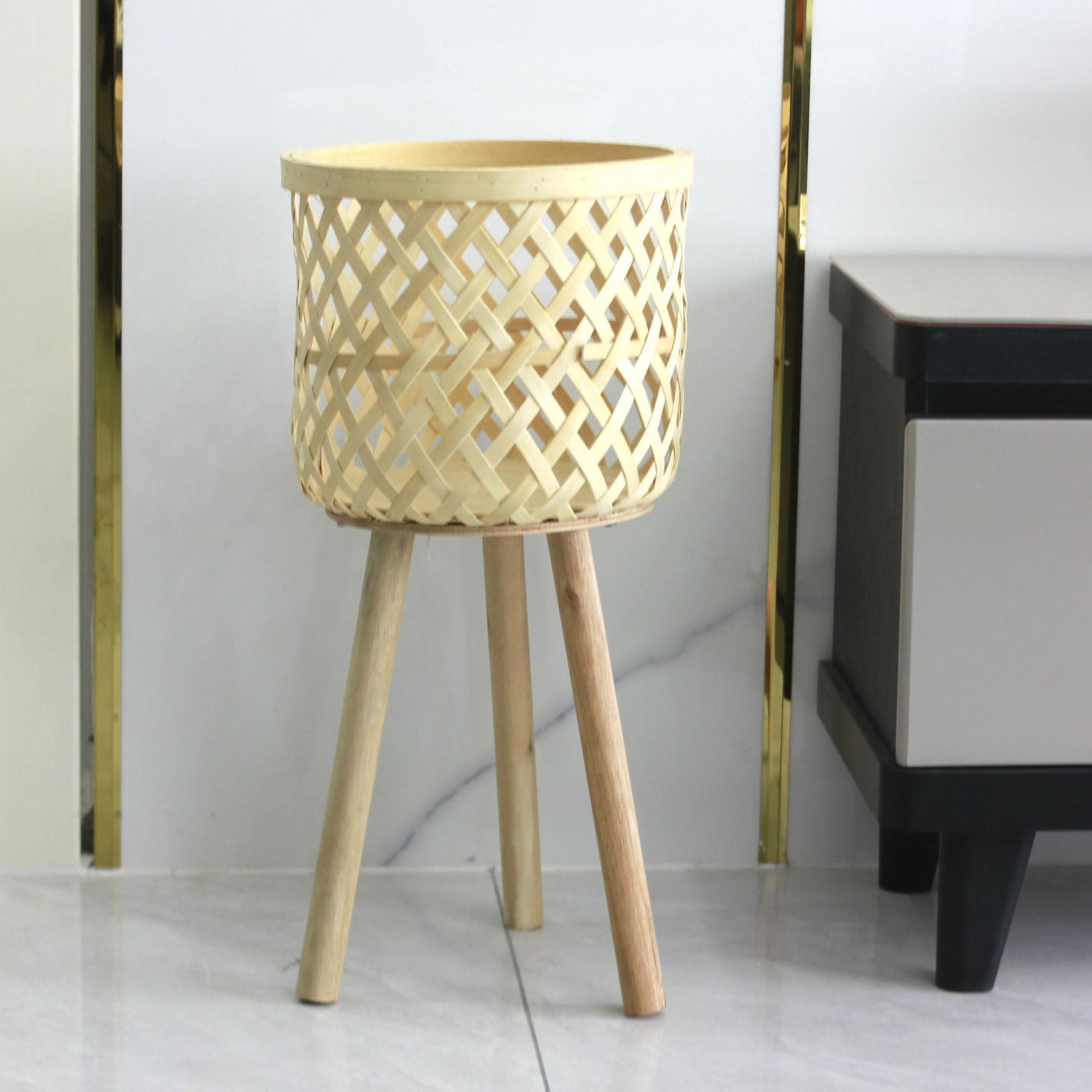 Knitted Bamboo Planter Pot Basket Woven Plants Vase Flowers Container Home Decoration, Size: L