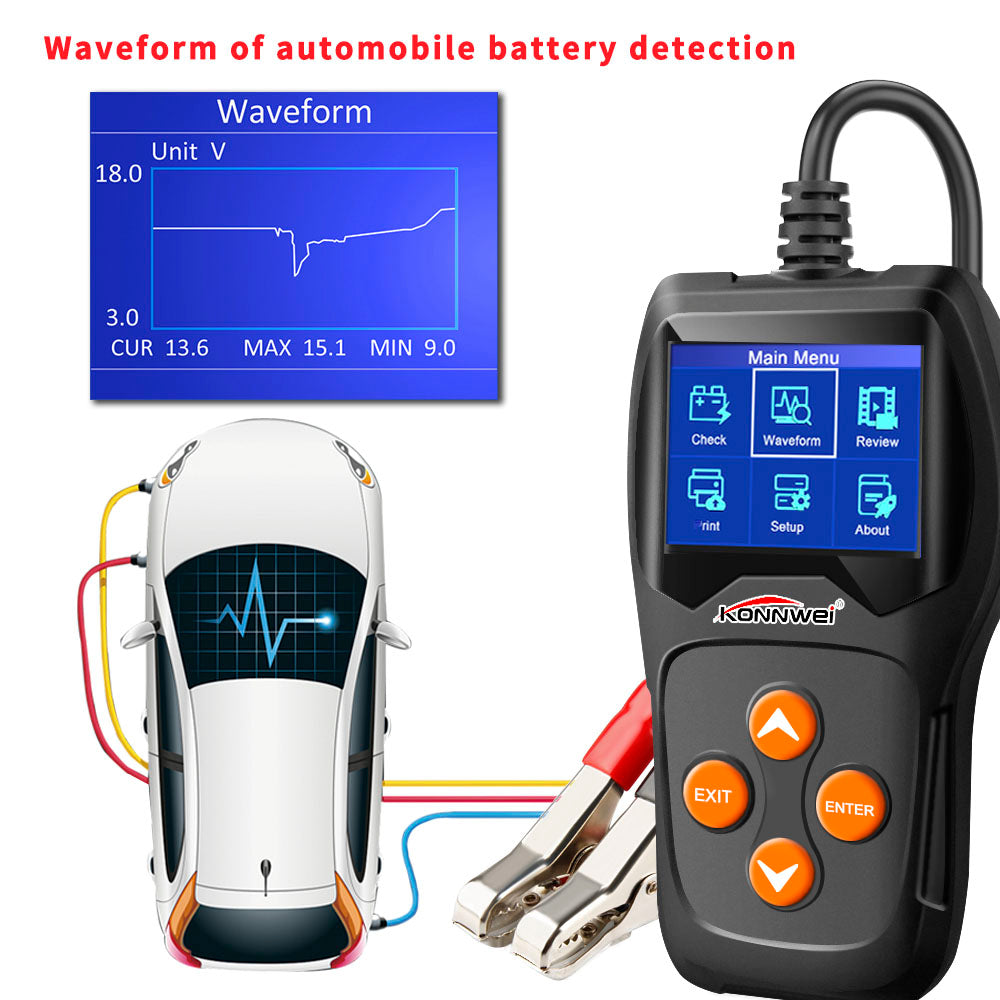 KONNWEI KW600 is the newest battery tester upgraded from the old classic backlit tester in the market,aiming at check battery health fast and accurately, as well as check the alternator working status. It's a professional vehicle diagnostic tool for checking your battery system issues by using the graphing voltage monitoring tool, with its color screen and unique pattern design, life time free update service, the KONNWEI KW600 is a perfect battery testing tool for your job and the family.