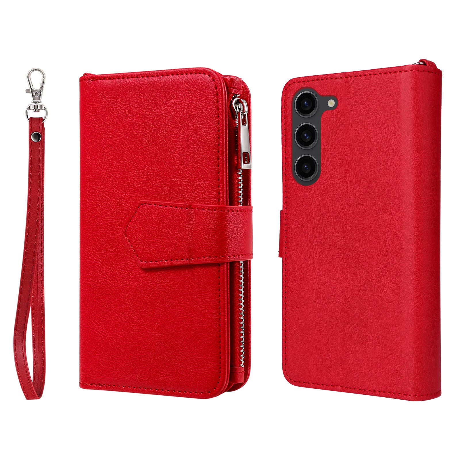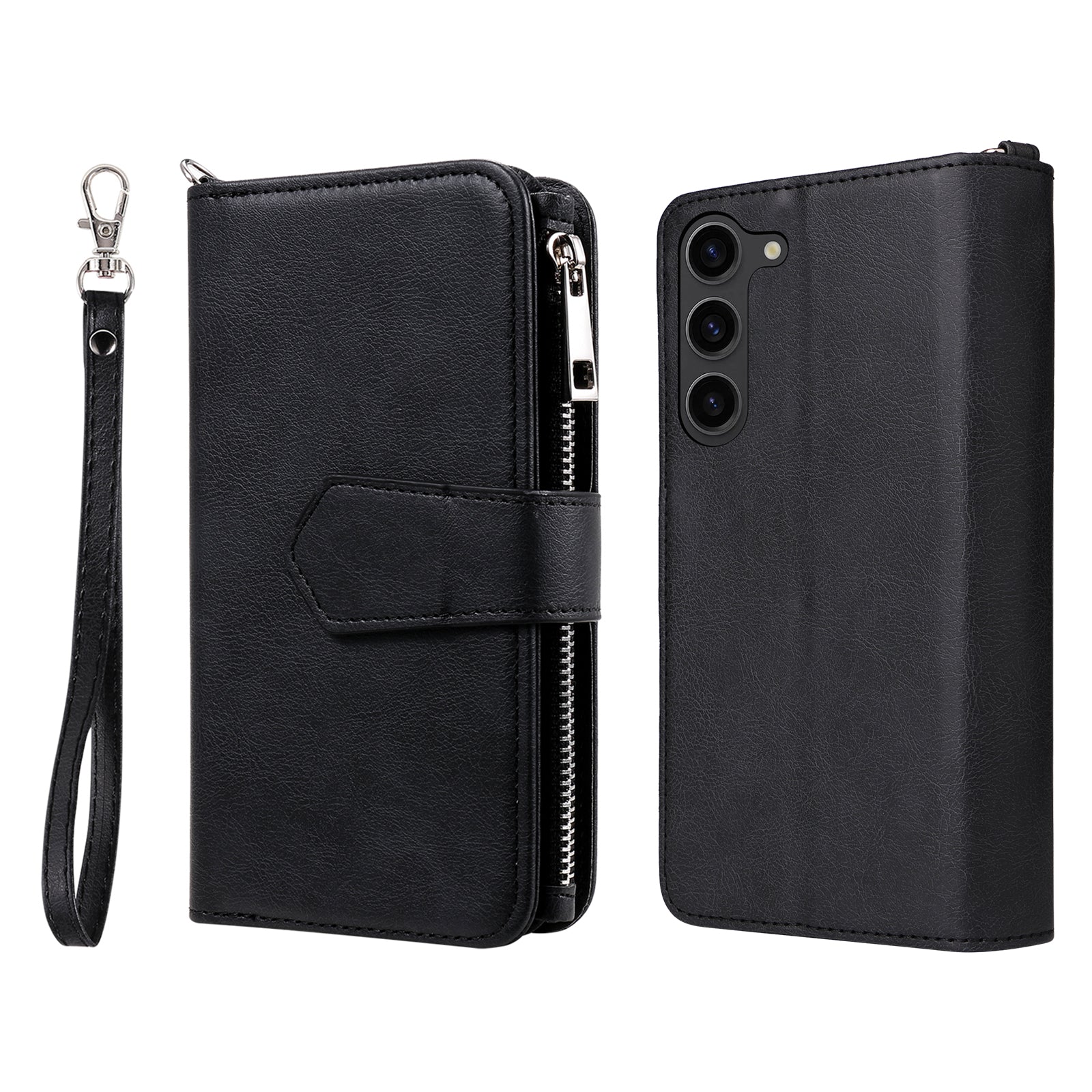 KT Multi-functional Series-4 Leather Phone Case for Samsung Galaxy S23 , Detachable Zipper Pocket Wallet Stand Cover