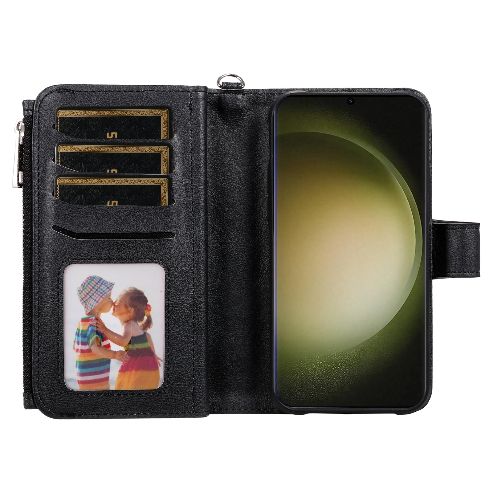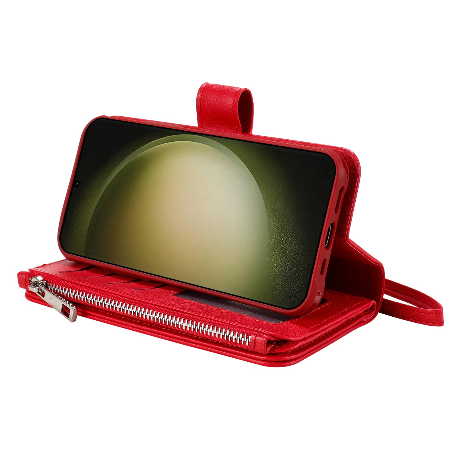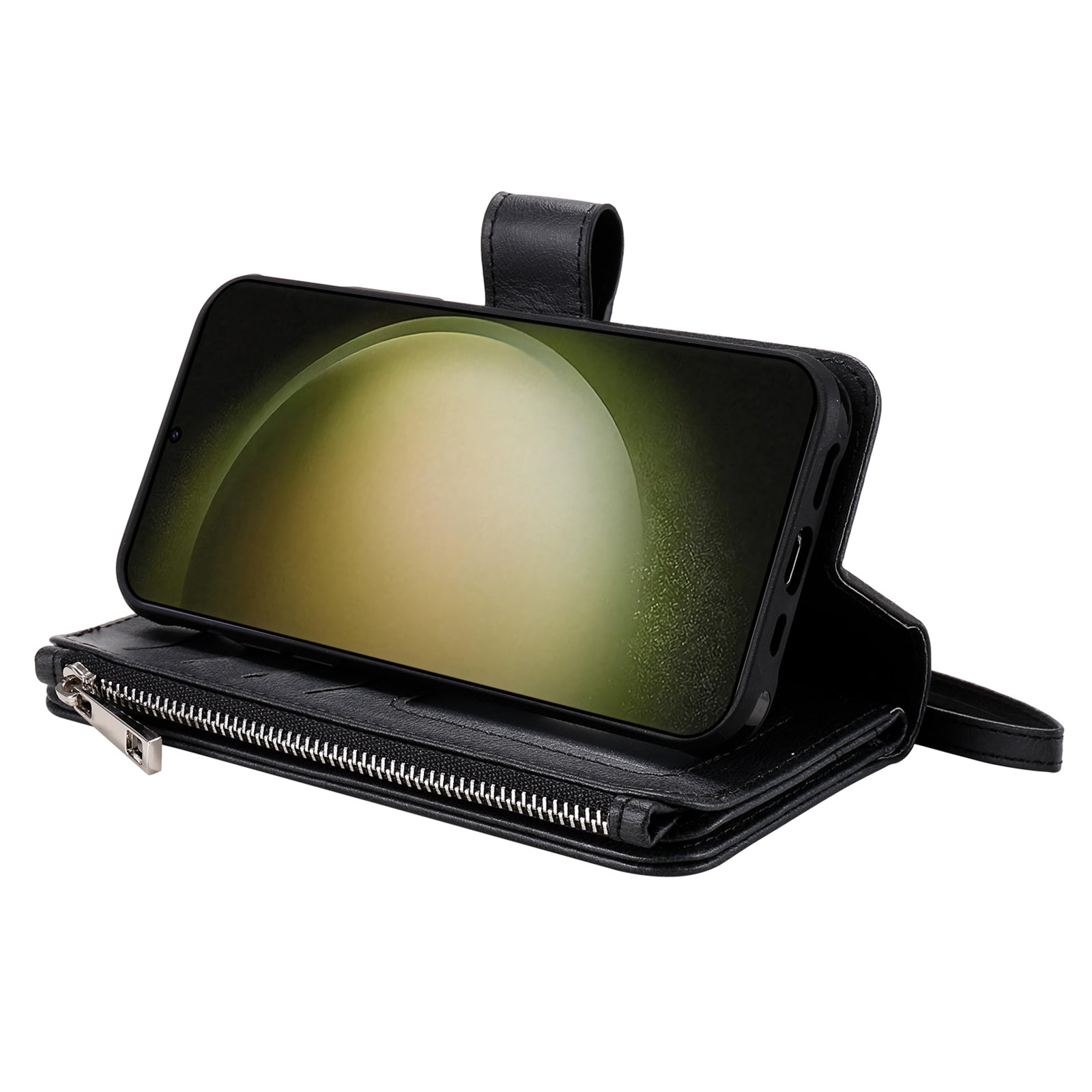 KT Multi-functional Series-4 Zipper Wallet Phone Case for Samsung Galaxy S23 Ultra , PU Leather Stand Detachable Flip Cover