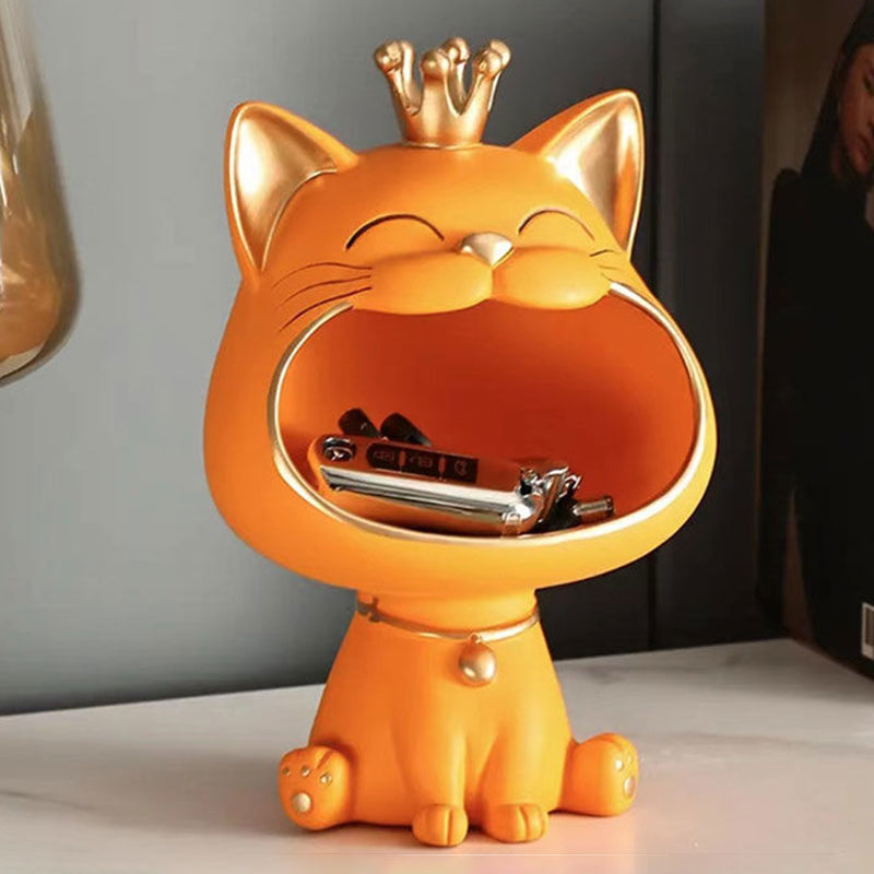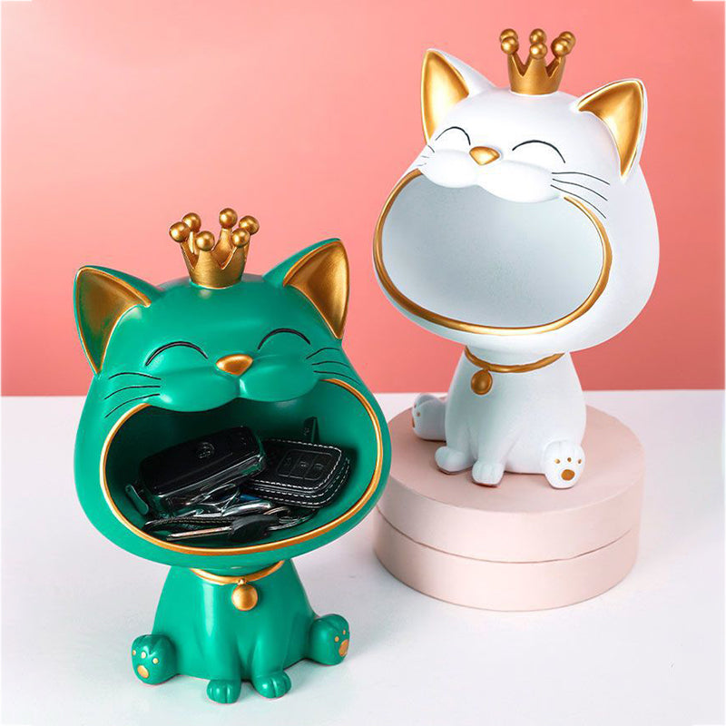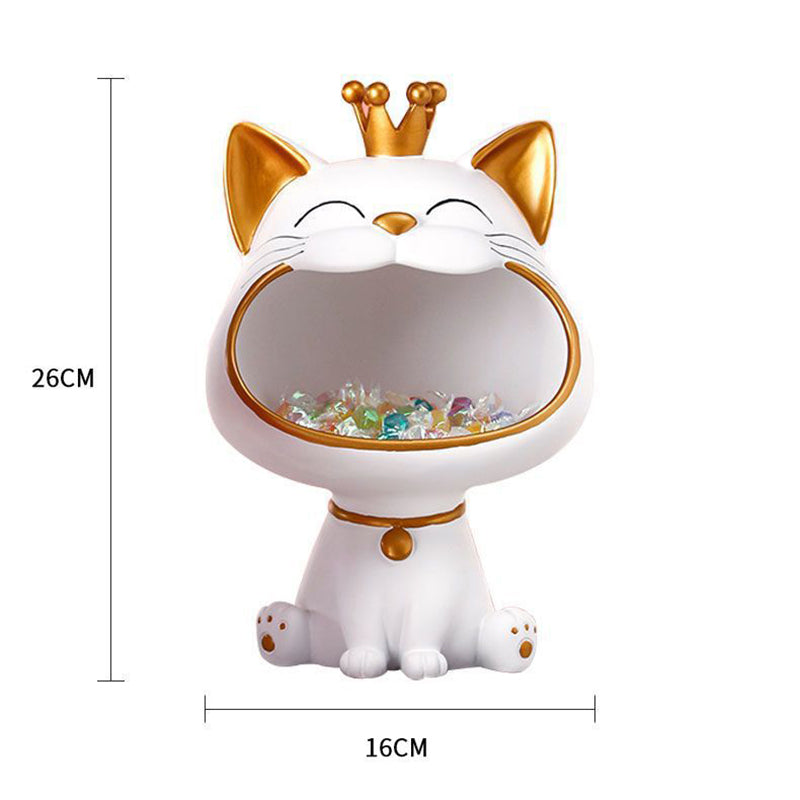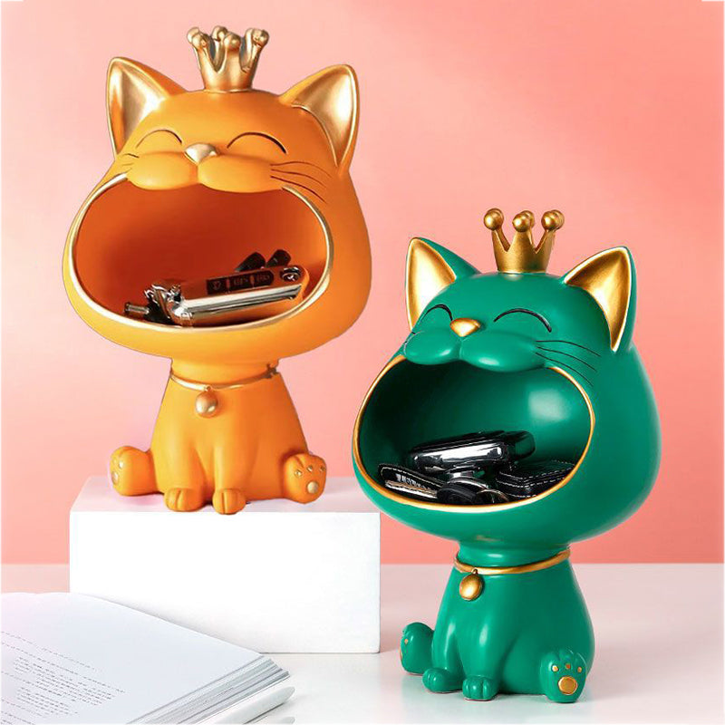 - The cat statue with the large mouth adds fun and adds much space for storage