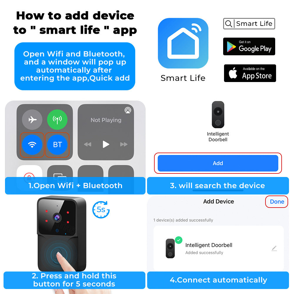 - APP Remote Control: If you are not at home, when someone presses your doorbell, your smartphone will receive a video call (must be on the APP interface) and notification no matter where you are