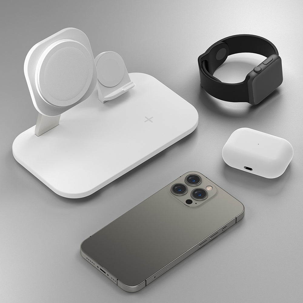 MOMAX Q.Mag Pro 3 UD26W 3-in-1 Magnetic Wireless Charger Desk Charging Stand for iPhone iWatch AirPods Charging Dock with MFM+MFW Certification