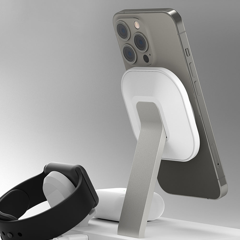 - Three-in-one magnetic wireless charging stand. For MagSafe module + for iWatch module + 25W wireless charging