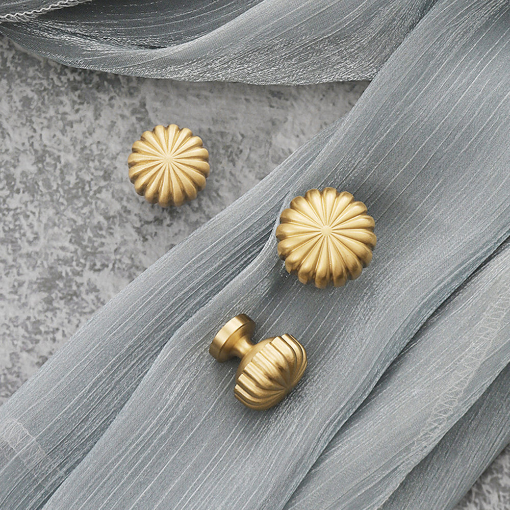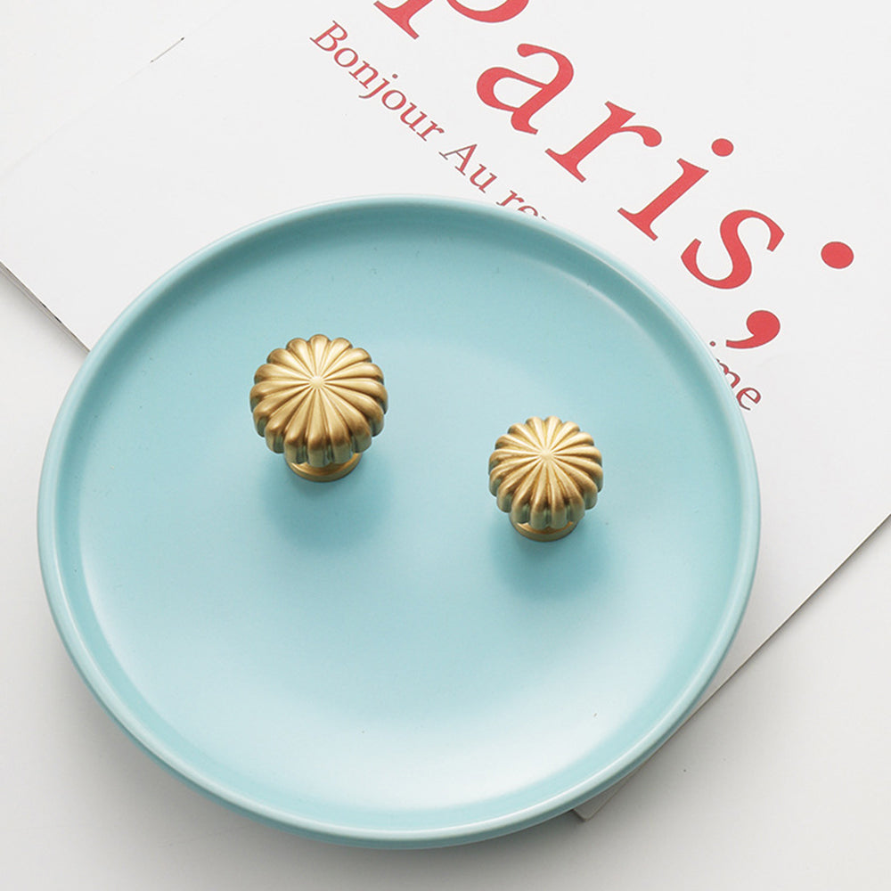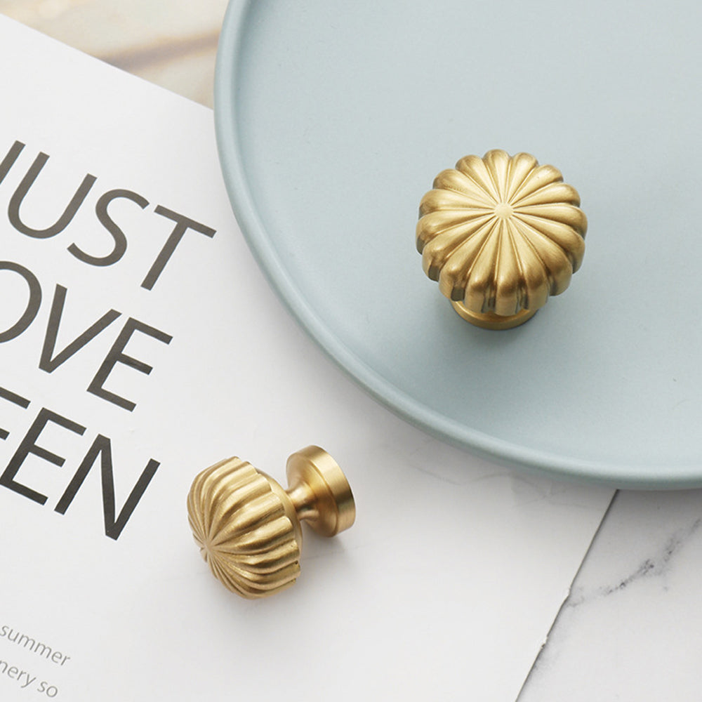 Nordic Pumpkin Shape Golden Brass Handle Cabinet Pull Knob Furniture Decor with 25mm Screw, Size S
