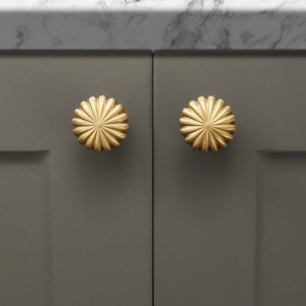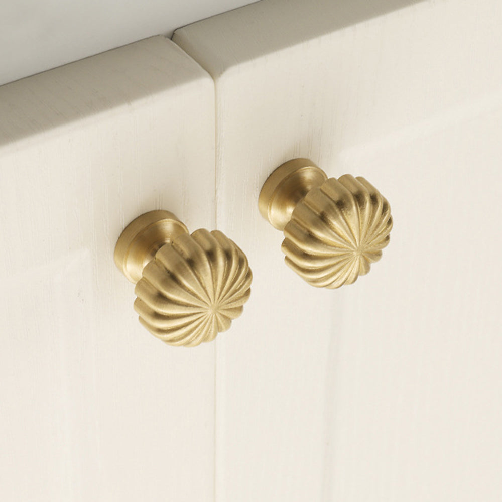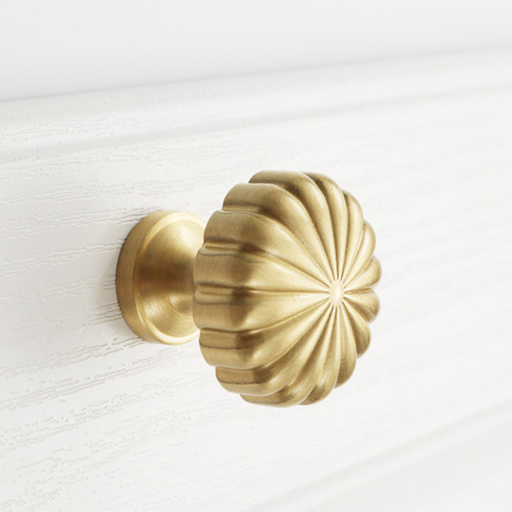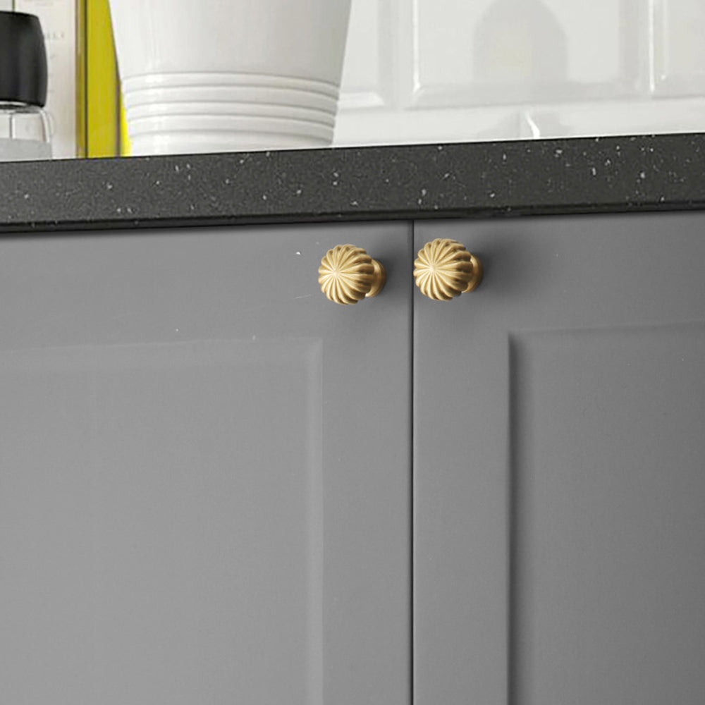 Nordic Pumpkin Shape Golden Brass Handle Cabinet Pull Knob Furniture Decor with 25mm Screw, Size S