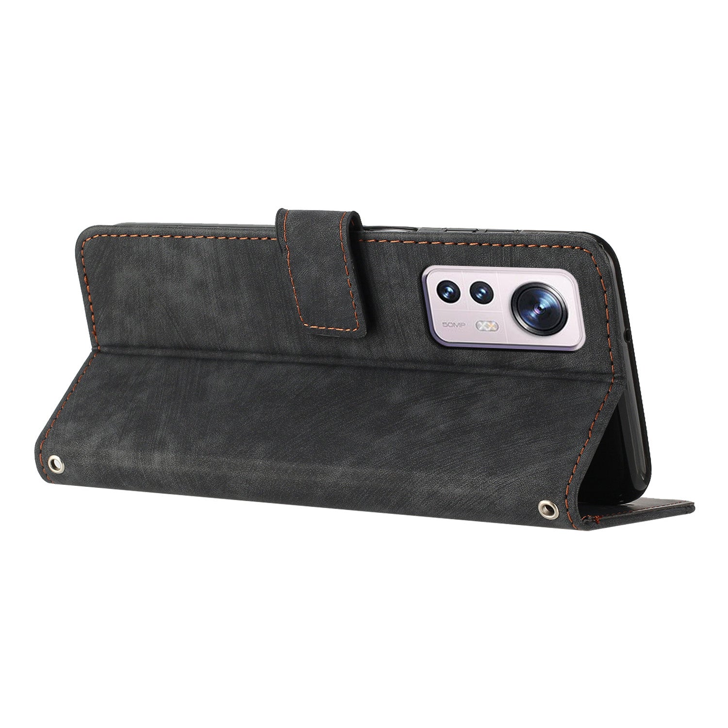 or Xiaomi 12 Lite 5G Skin-touch Lines Imprint Phone Case Leather Wallet Flip Stand Mobile Cover