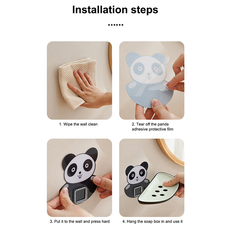 Panda Design Wall Mounted Adhesive Soap Holder Draining Soap Dish Rack