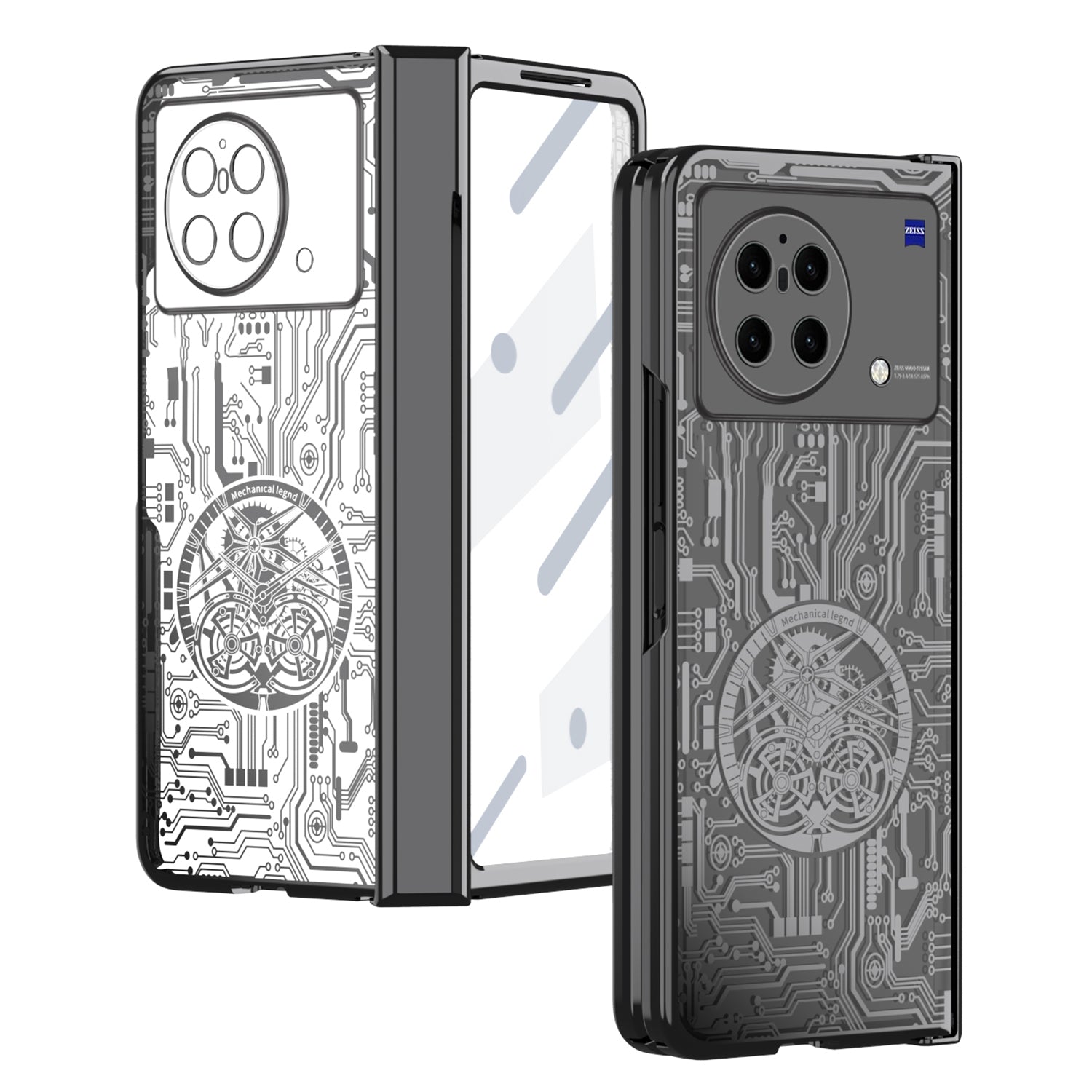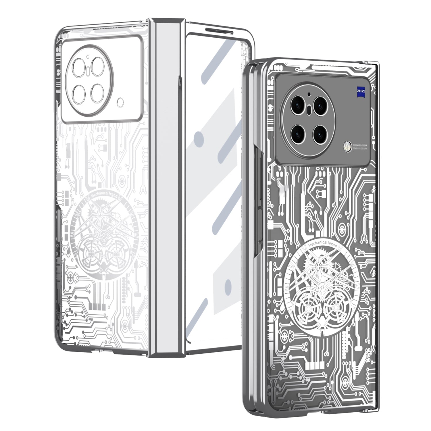 PC Cover for vivo X Fold Mechanical Legend Series Electroplating Folding Phone Case with Tempered Glass Film