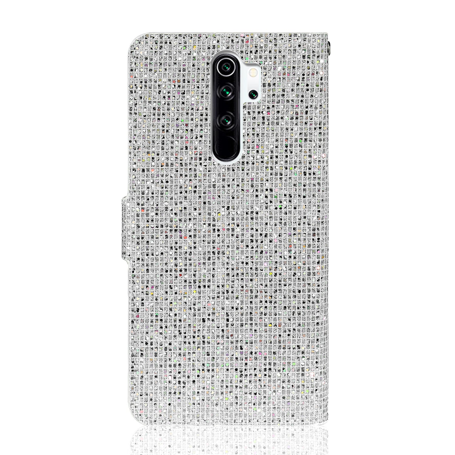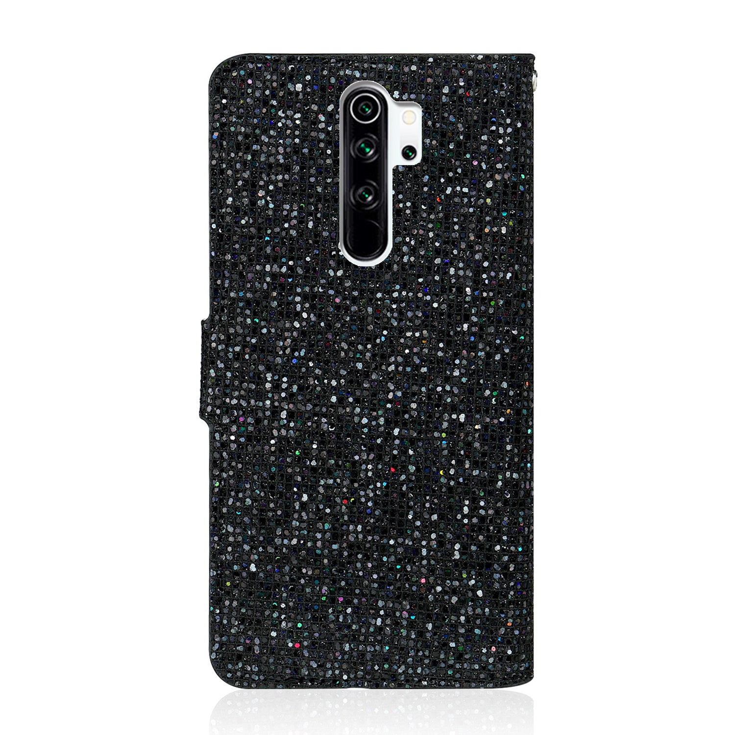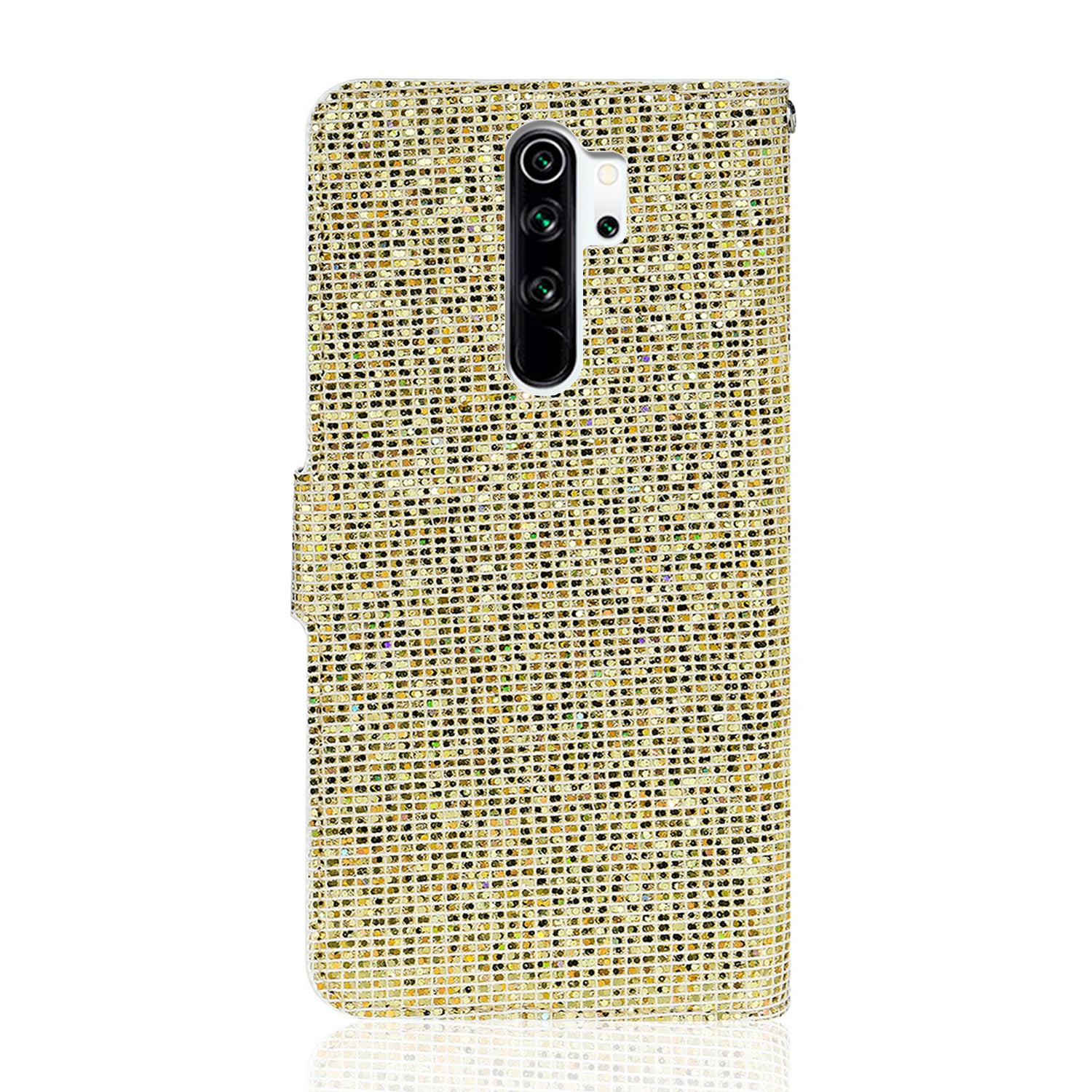 Phone Cover Glittery Powder Splicing Wallet Stand Leather Case for Xiaomi Redmi Note 8 Pro