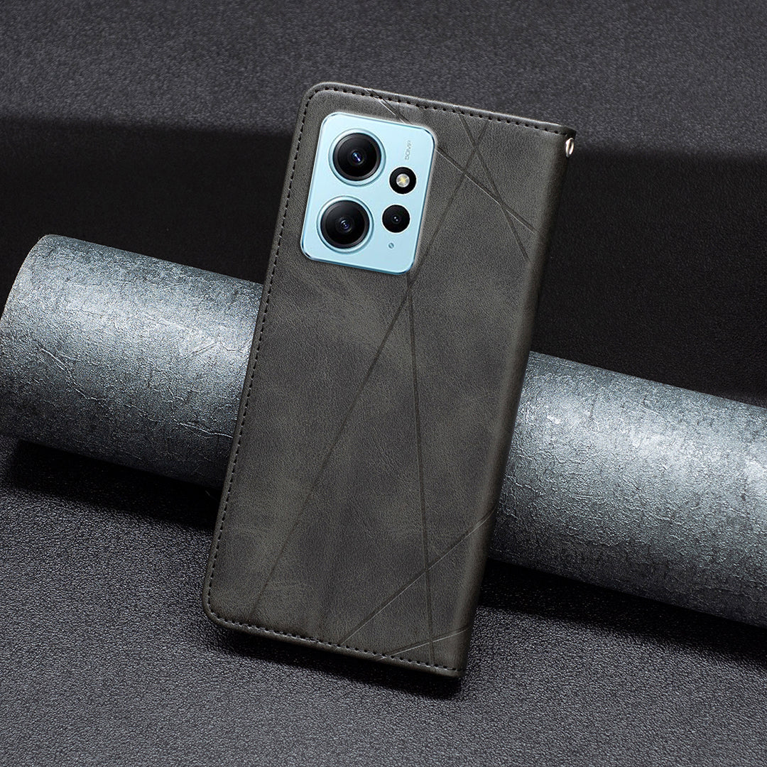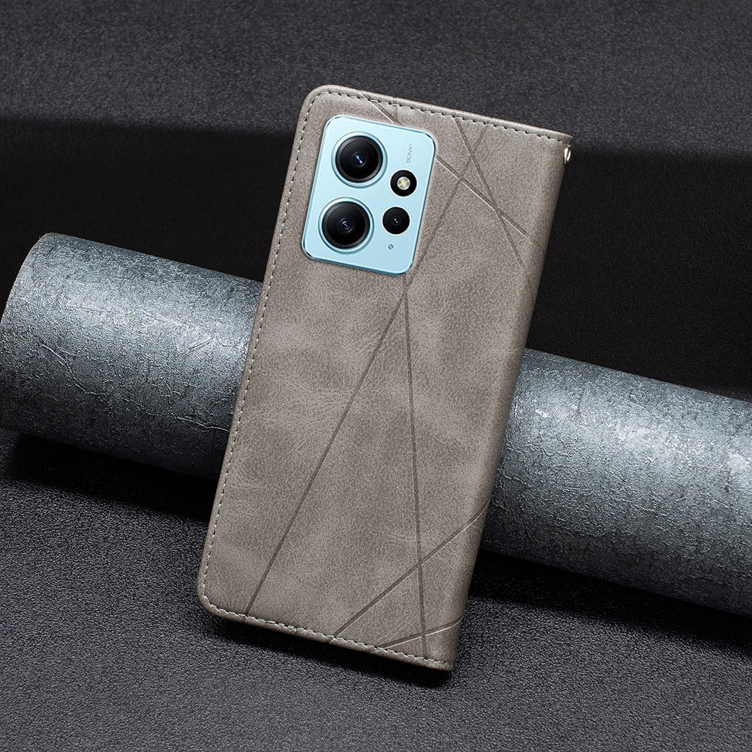 Phone Shell for Xiaomi Redmi Note 12 4G PU Leather Card Holder Splicing Imprinting Pattern Stand Cover