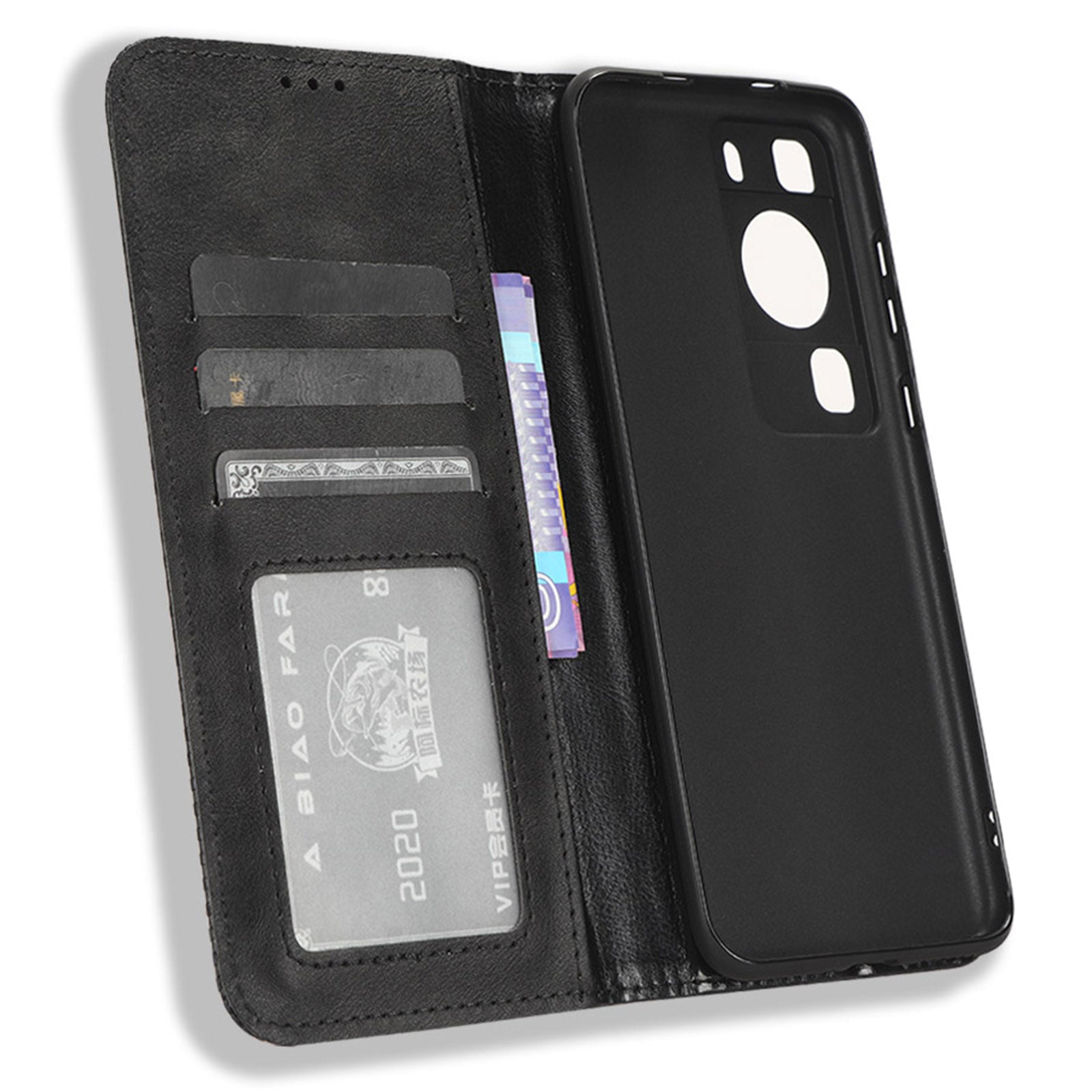 Phone Stand Cover for Huawei P60 / P60 Pro Magnetic Retro PU Leather Cell Phone Wallet Case
