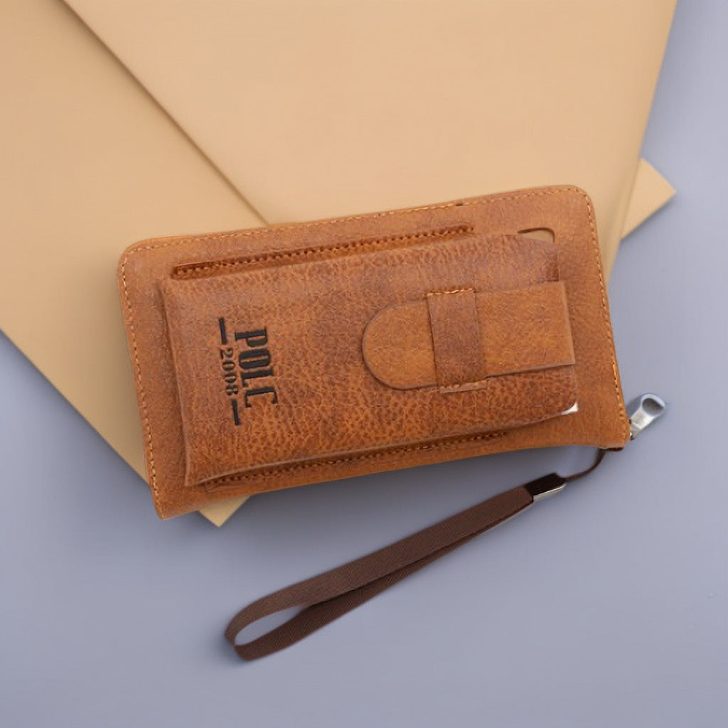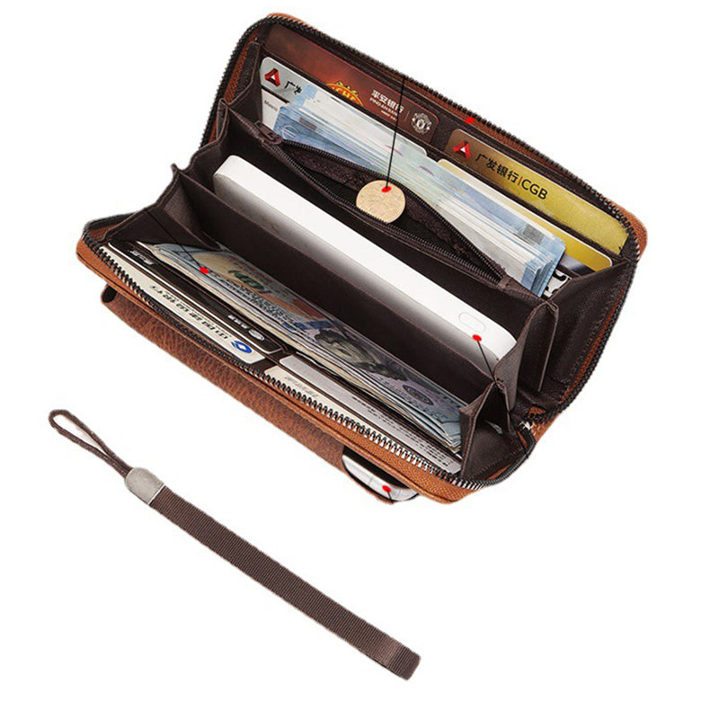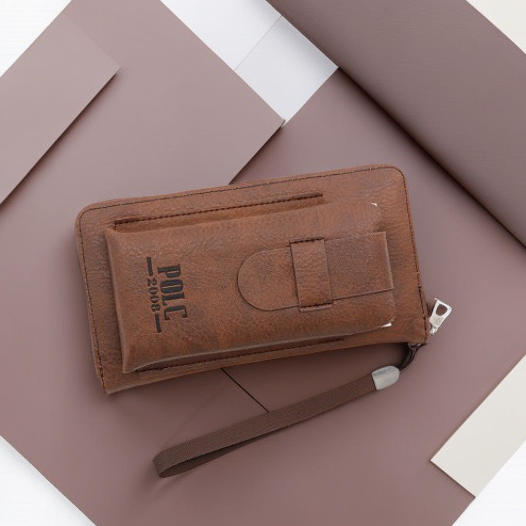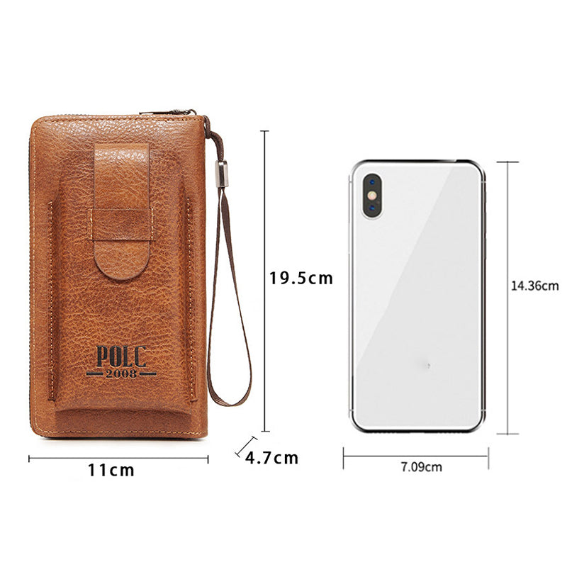 POLC PU Leather Zipper Design Wallet Coin Card Storage Holder Cash Cell Phone Organizer Pouch Wrist Clutch Bag