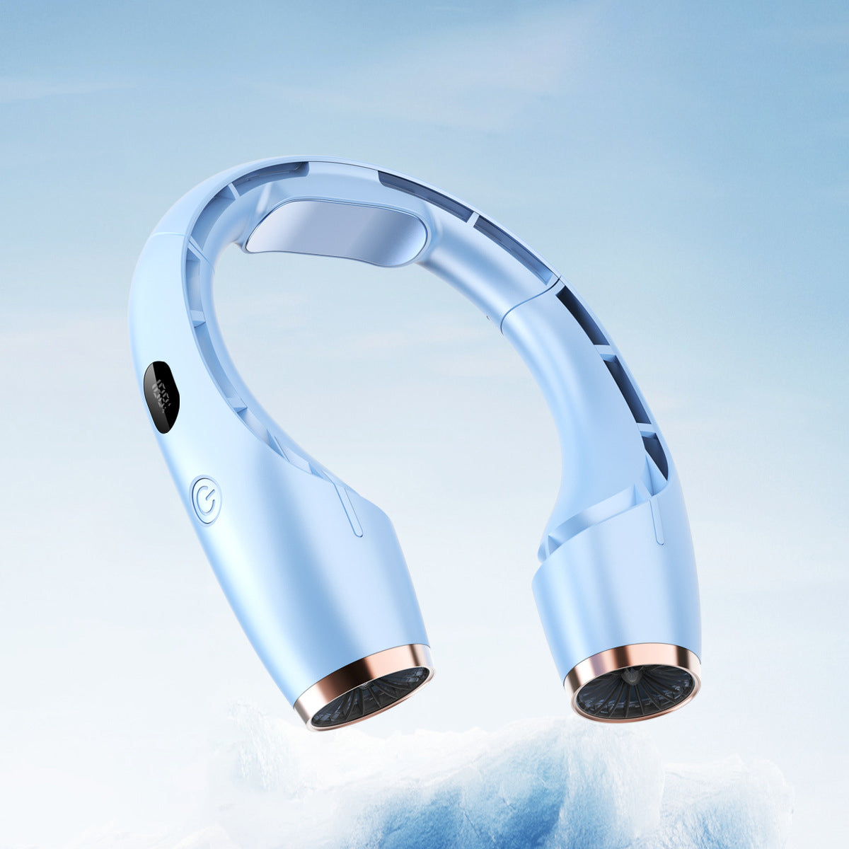 Portable Neck-Mount Cooling Fan Digital Display Bladeless Fan Wearable Personal Air Cooler