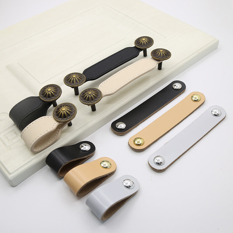 - The cabinet pulls are made of PU leather. The handle part is solid very sturdy and durable after easy installation