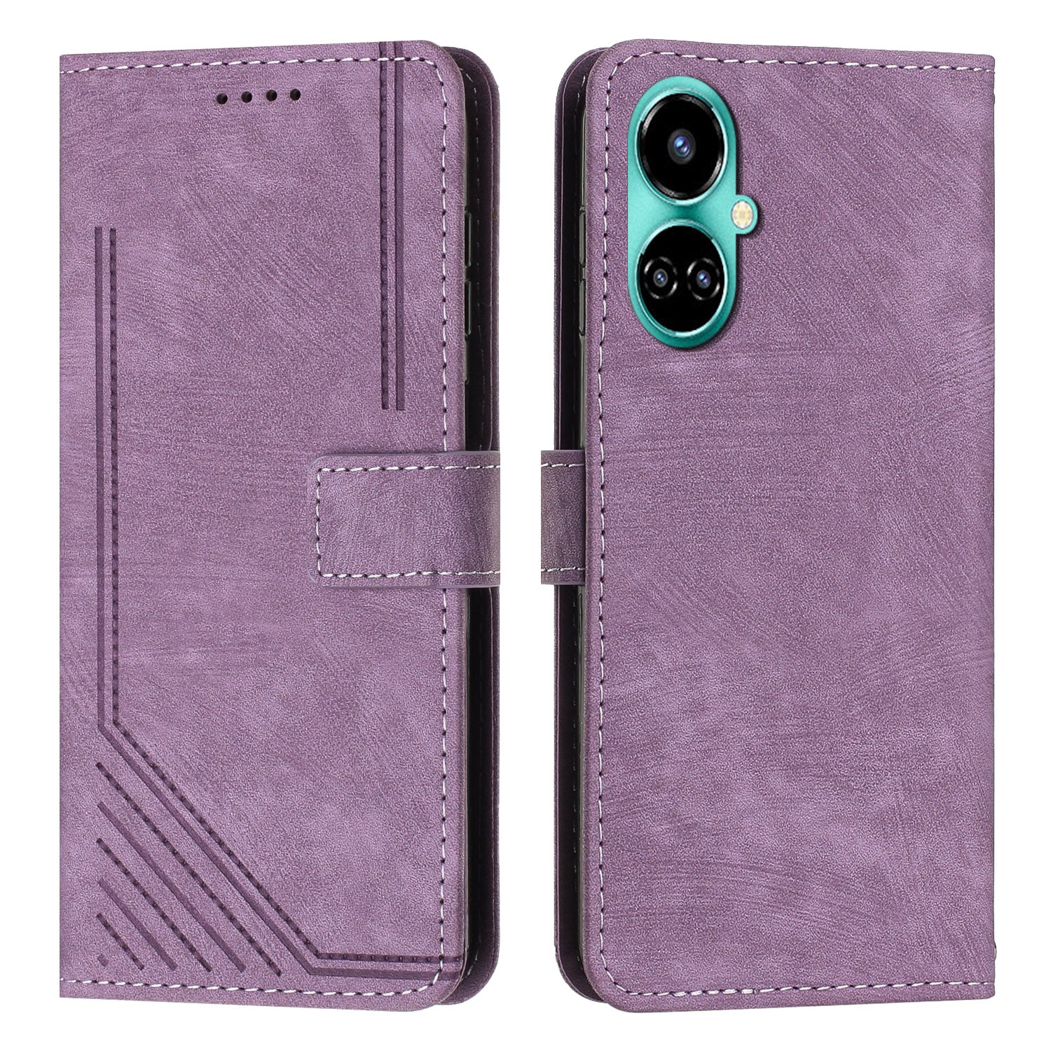 PU Leather Folio Flip Case for Tecno Camon 19 4G / 19 Pro 4G / 5G , Lines Imprinted Stand Wallet Phone Cover