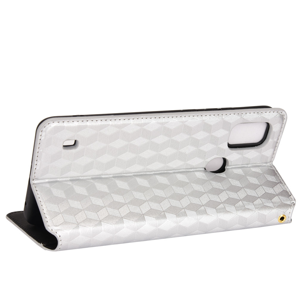 PU Leather Imprinting 3D Rhombus Phone Case Magnetic Auto-absorbed Protective Cover with Stand Wallet for ZTE Blade A51/Telstra Essential Pro 3