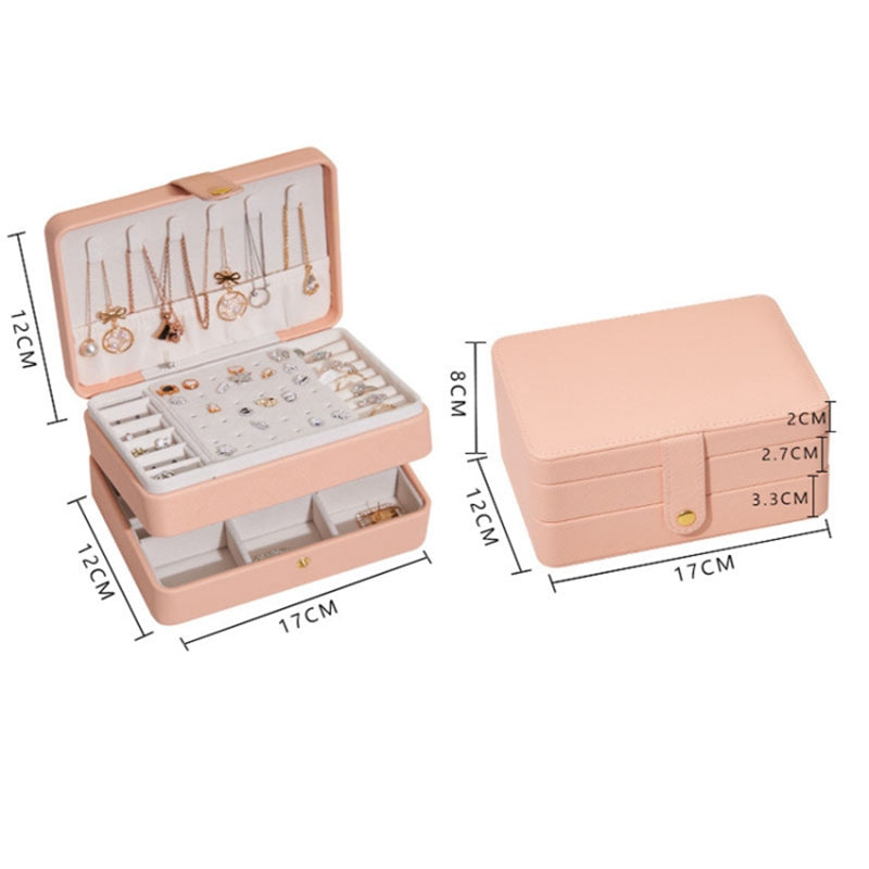 PU Leather Jewelry Box Necklace Ring Ear Studs Organizer Container Display Case, 17x12x8cm