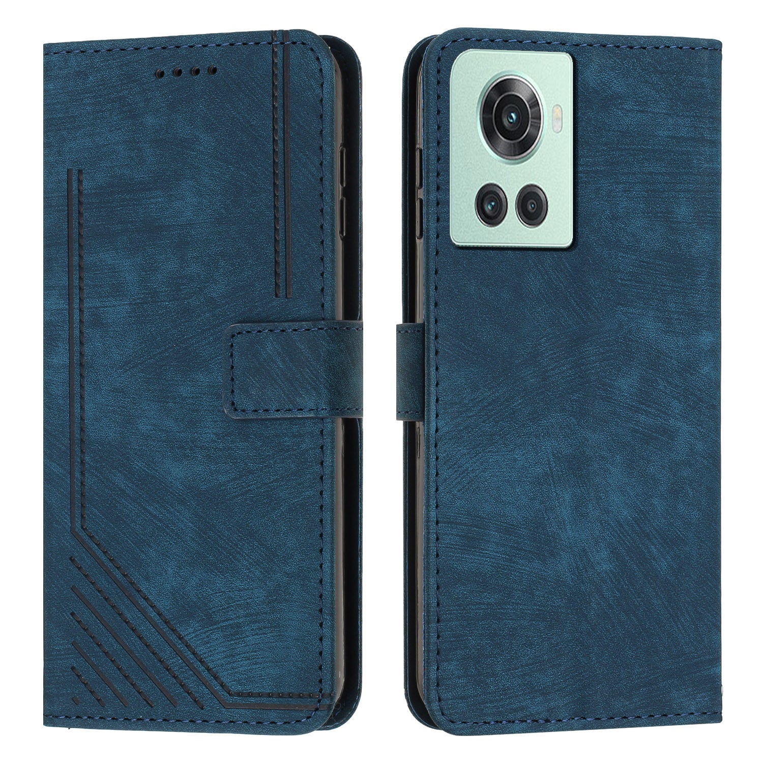 PU Leather Phone Stand Cover for OnePlus Ace 5G , Anti-Scratch Imprinted Lines Wallet Phone Case with Straps