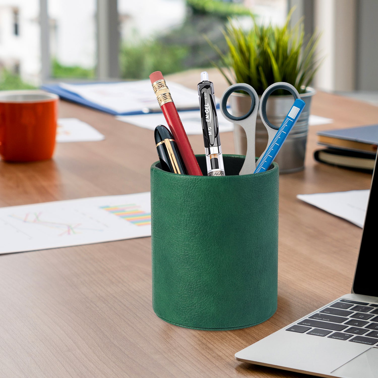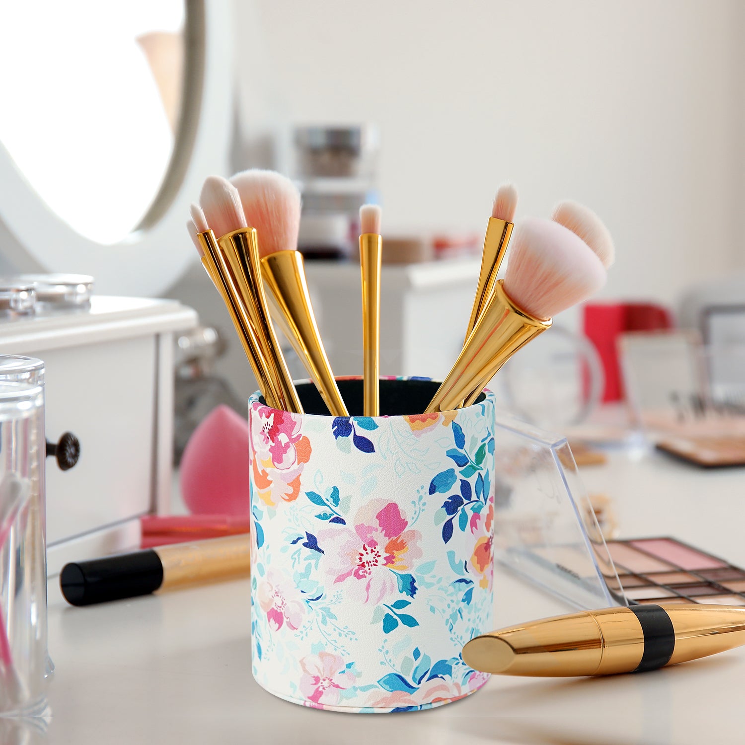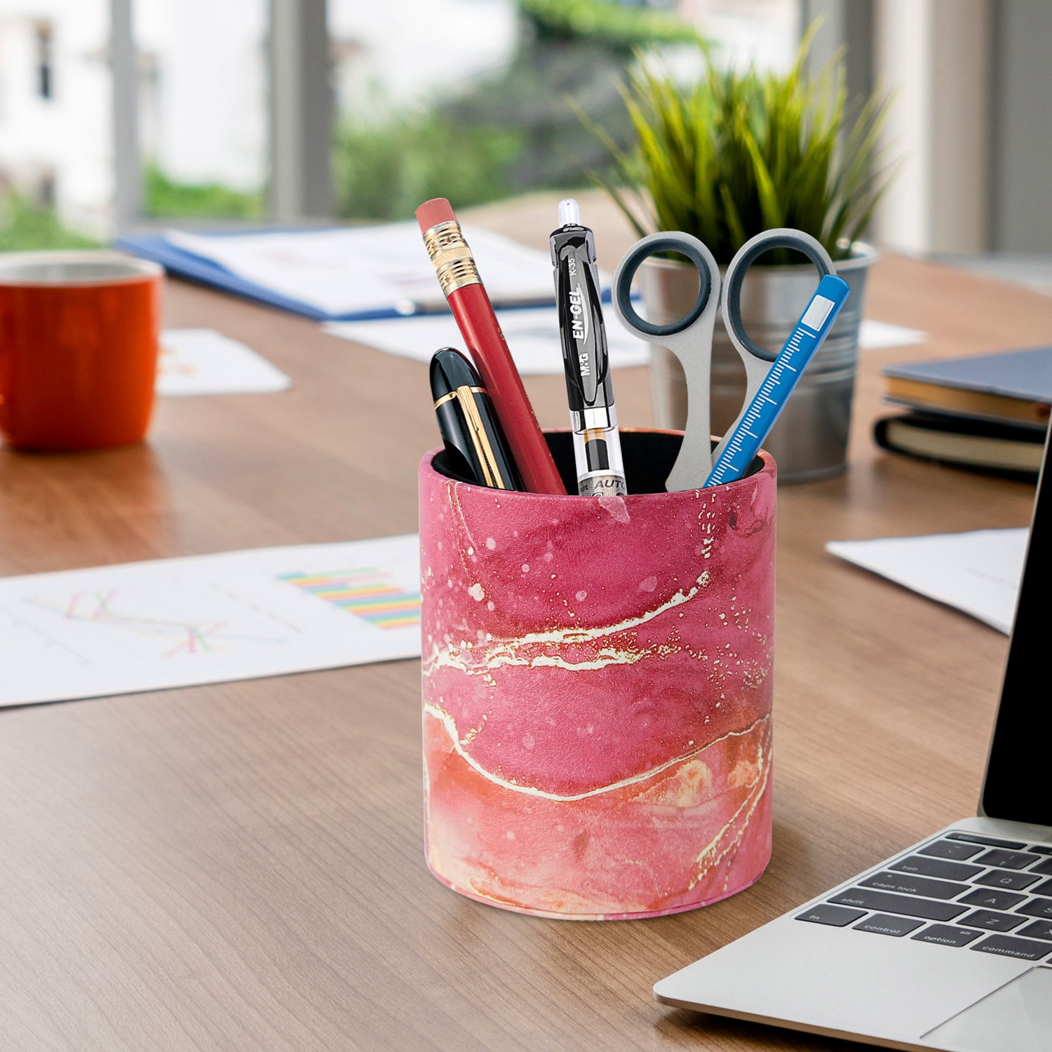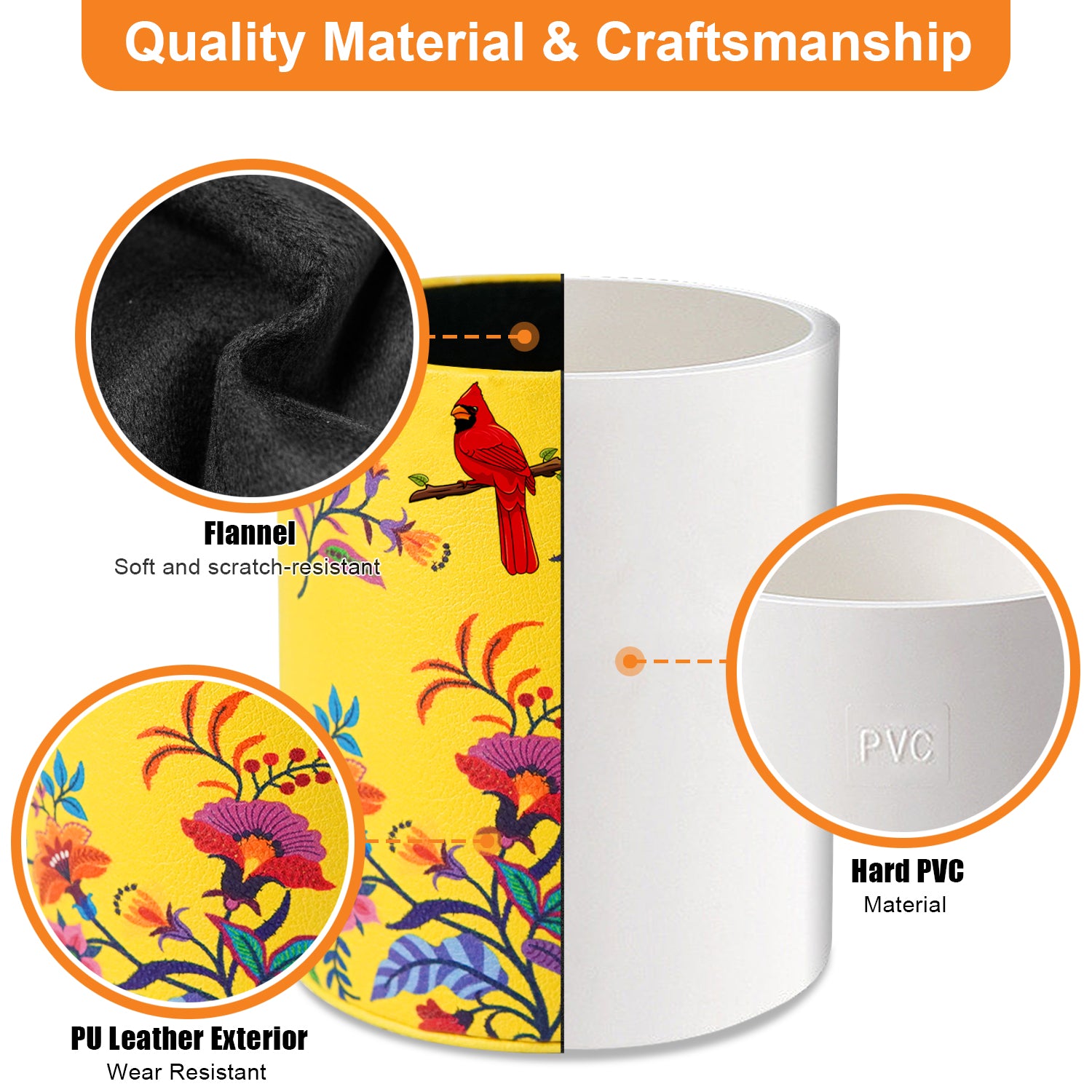 PU Leather + PVC Pen Holder Pencil Cup Makeup Brush Pen Organizer School Office Desk Stationery