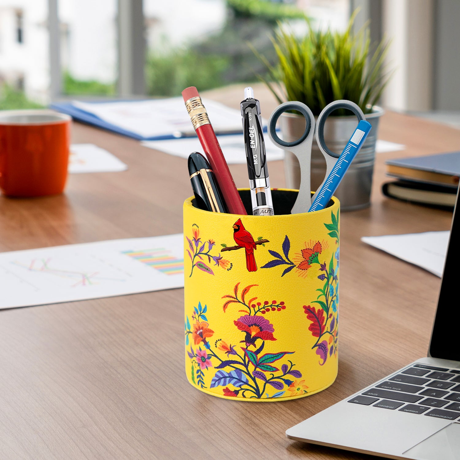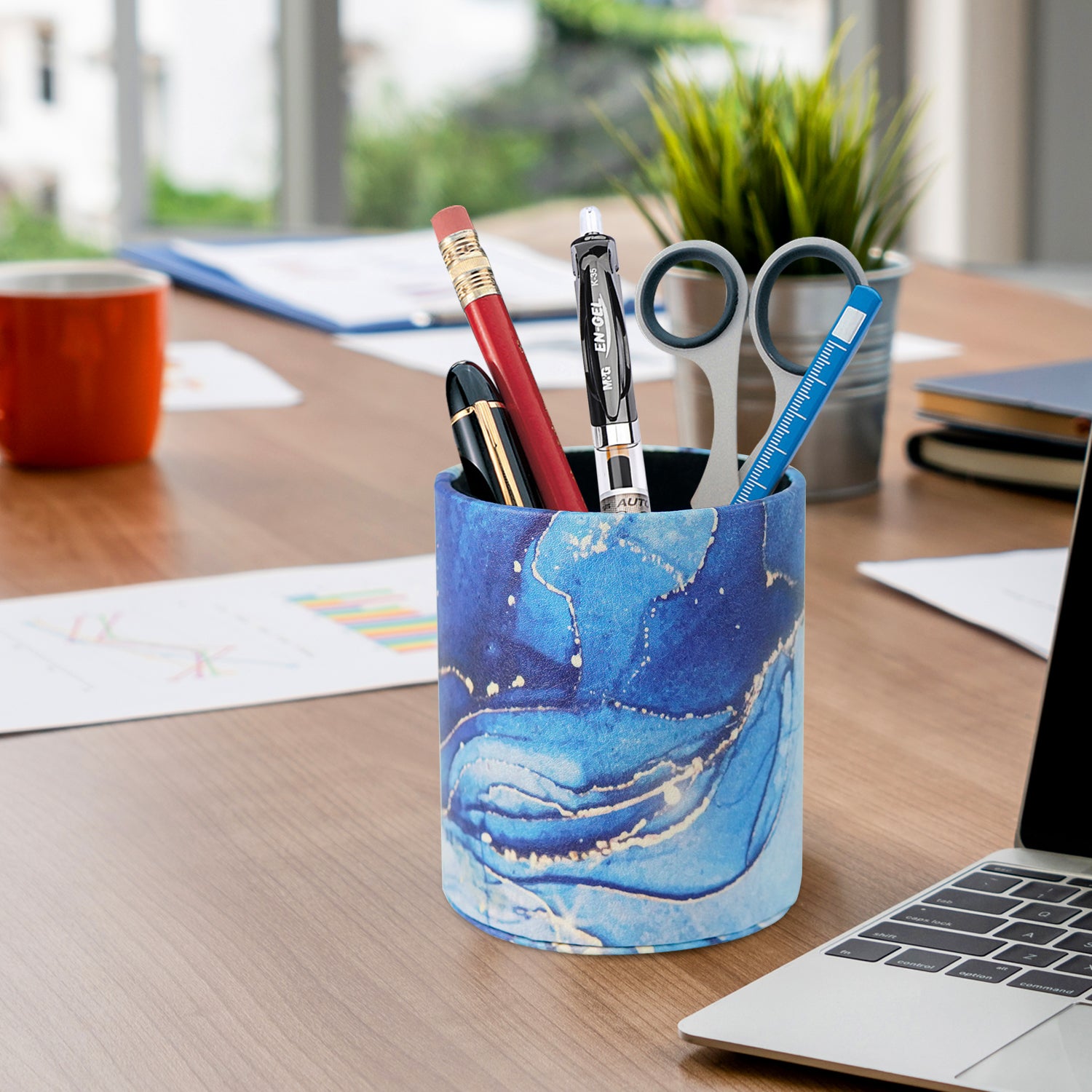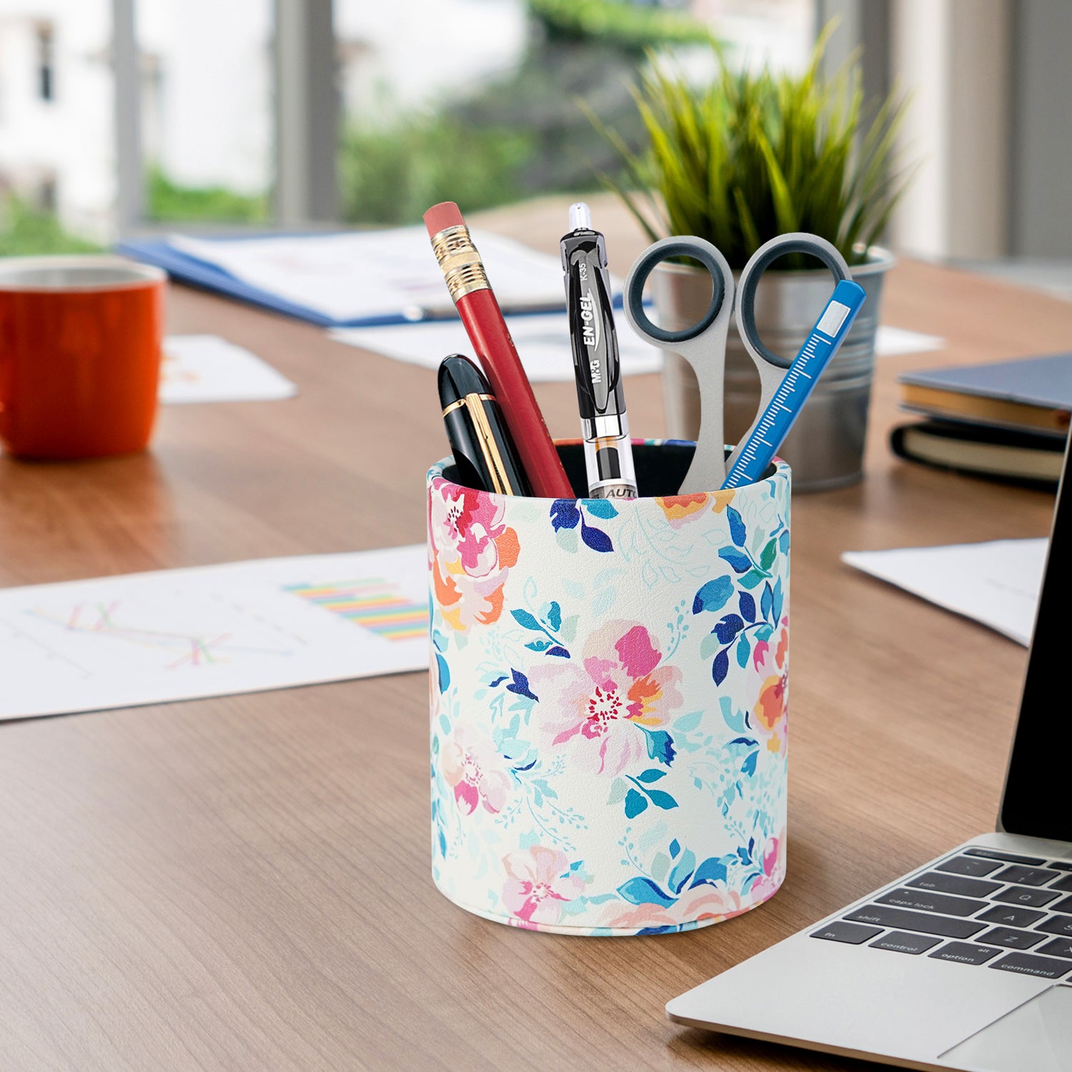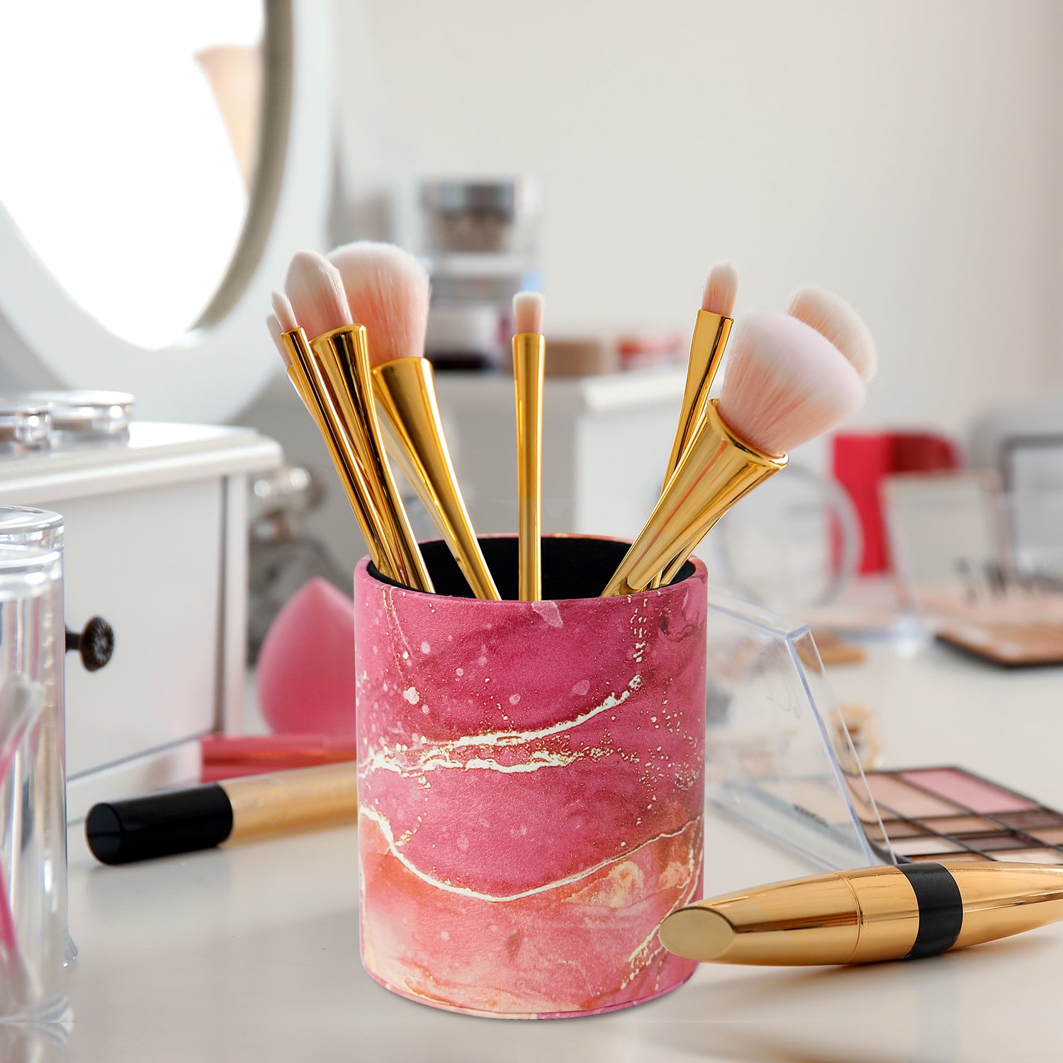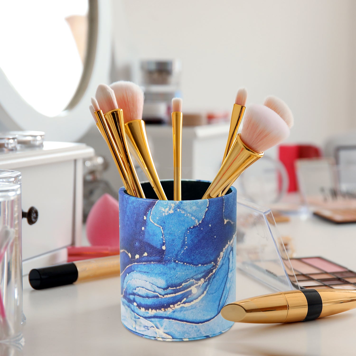 PU Leather + PVC Pen Holder Pencil Cup Makeup Brush Pen Organizer School Office Desk Stationery