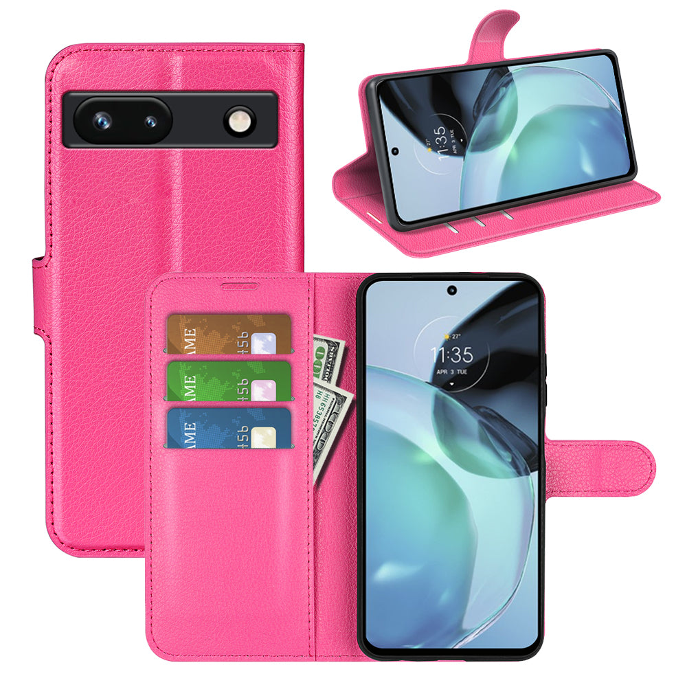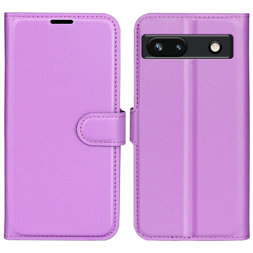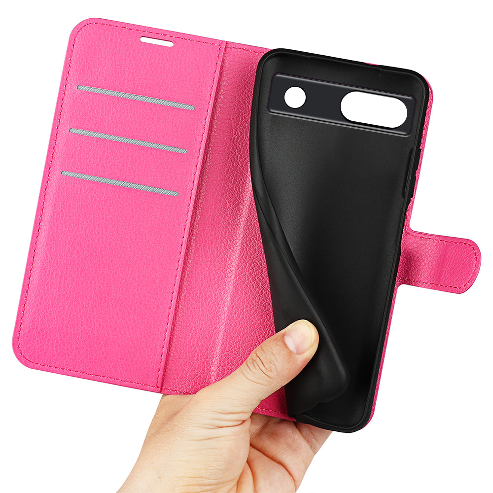 PU Leather Shell for Google Pixel 7a Drop-proof Litchi Texture Phone Case Wallet Stand Flip Cover
