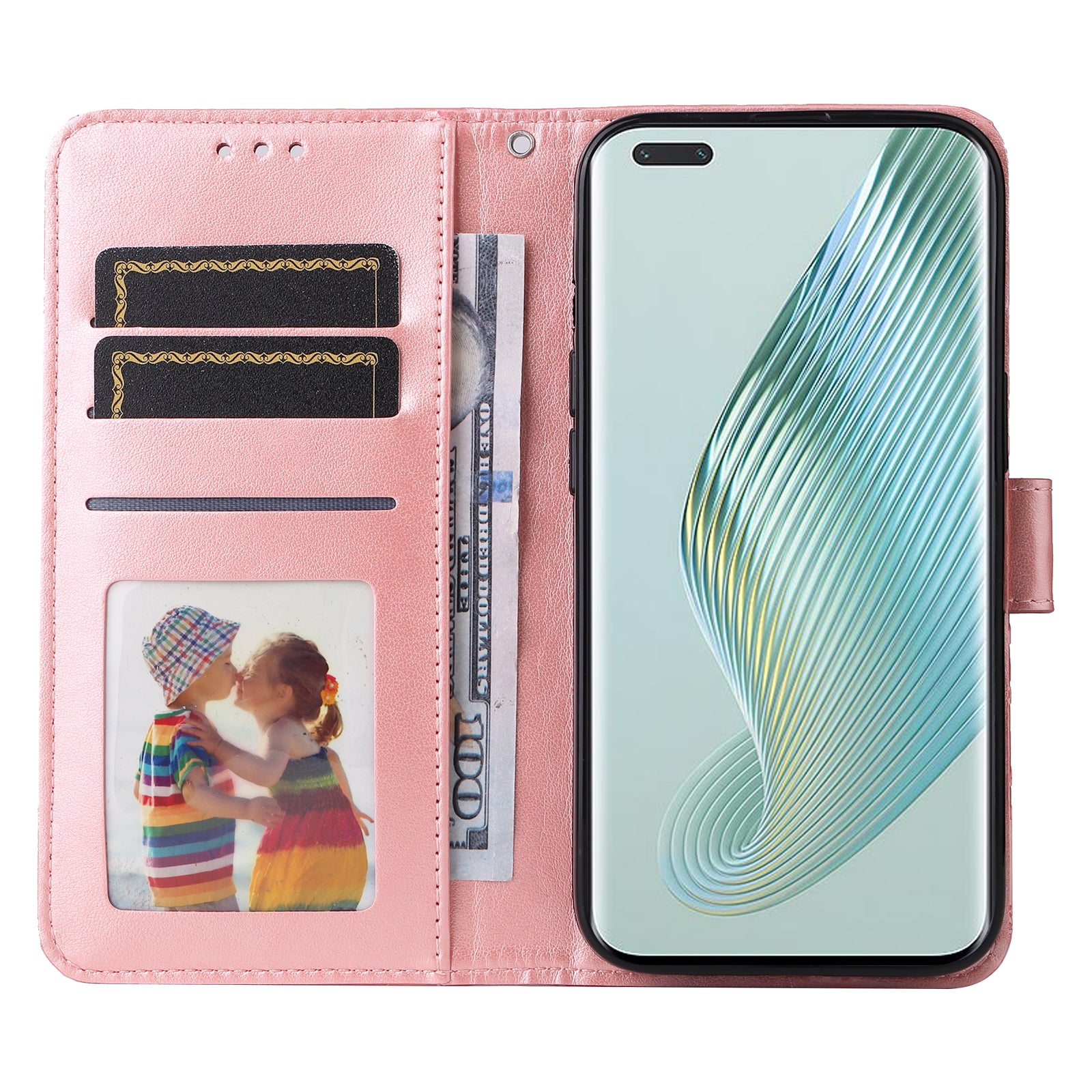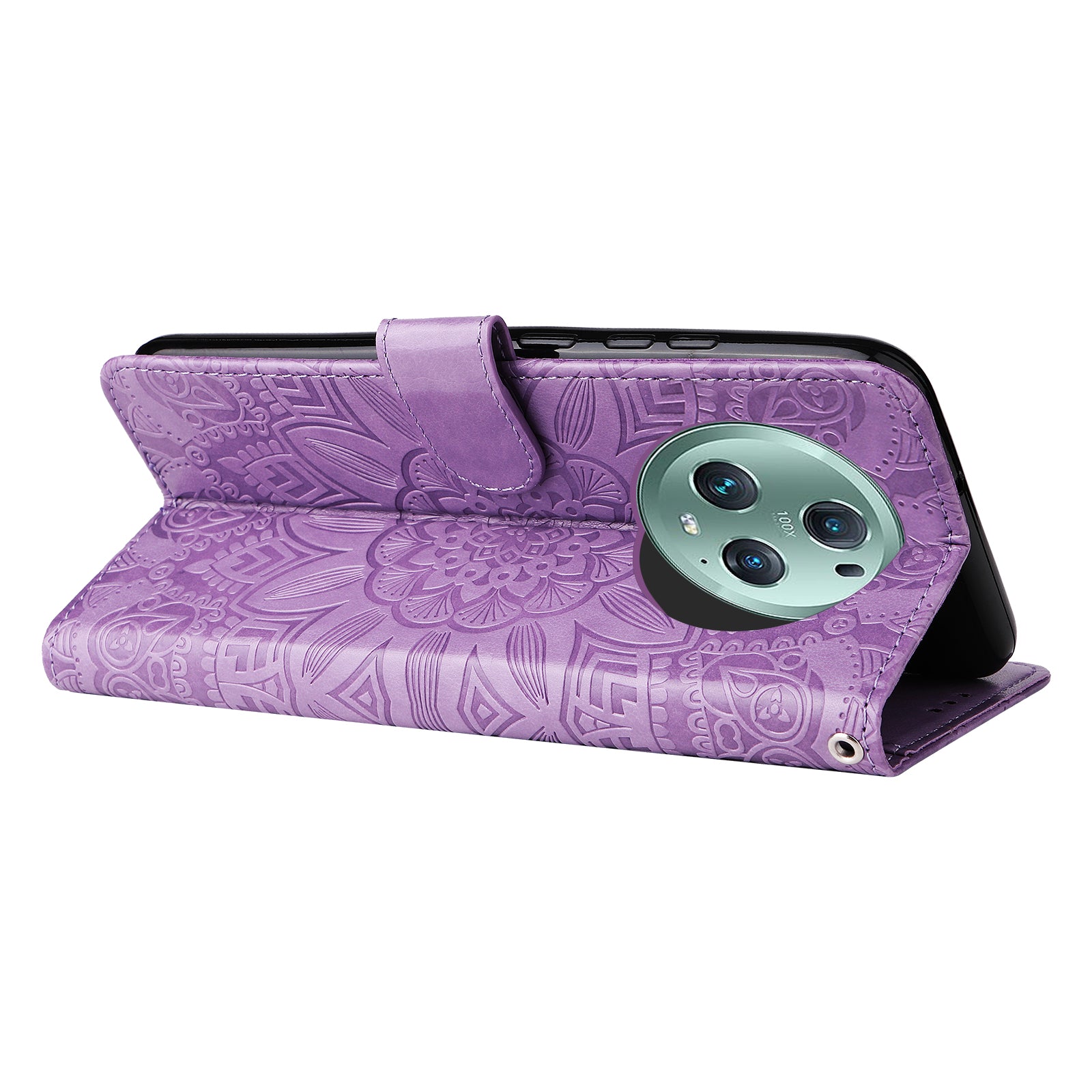 PU Leather Stand Cover for Honor Magic5 Pro Sunflower Imprinted Phone Wallet Case with Strap
