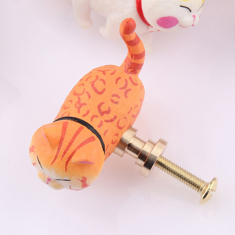 PVC+Brass Single Hole Furniture Handle Cute Cat Rotatable Drawer Wardrobe Cabinet Pull Handle, 25mm Screw