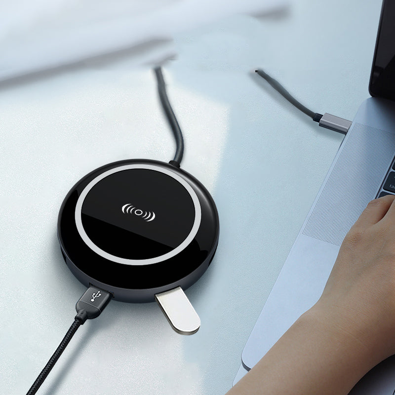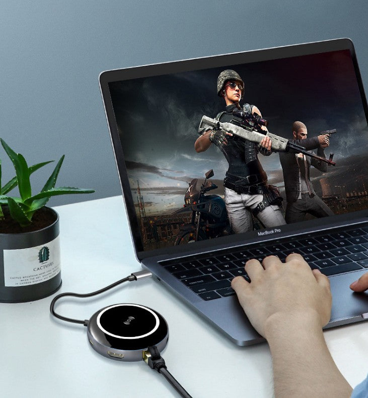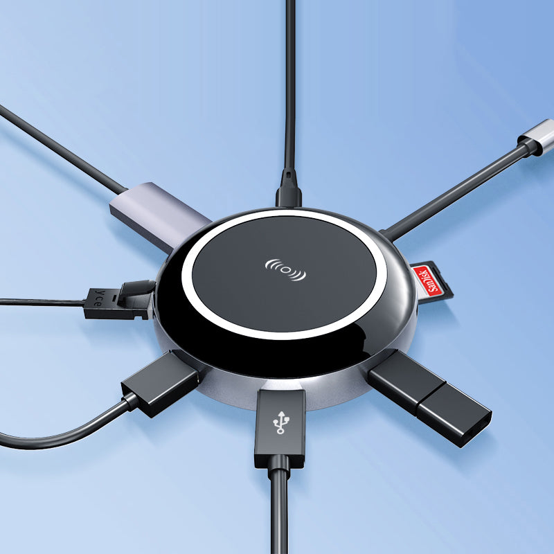 QTH901 9 in 1 Type C Hub Wireless Charger Card Reader with HDMI USB 3.0x3 HDMI RJ45 SD TF Card Slot