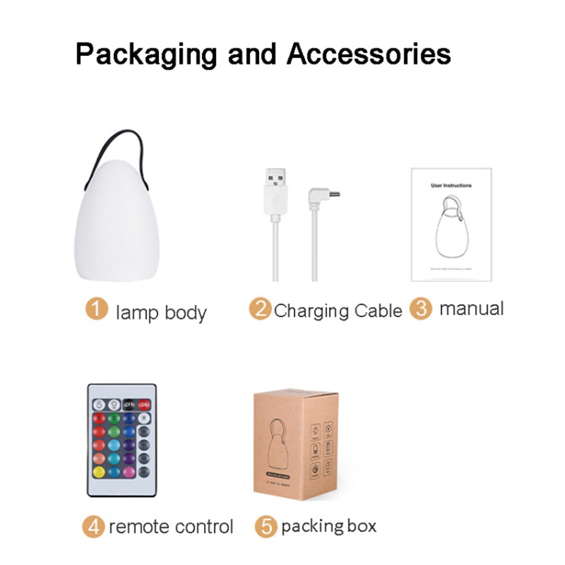 Remote Control Night Light Rechargeable 16 Colors 6 Brightness Levels Bedside Lamp Egg-Shaped Lamp for Home, Bar