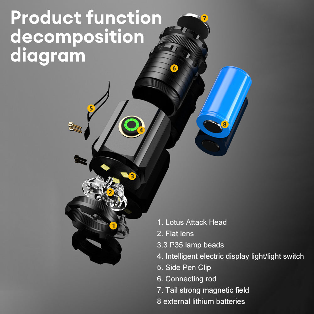 - High-quality materials combined with exquisite craftsmanship, the flashlight is wear-resistant and drop-resistant