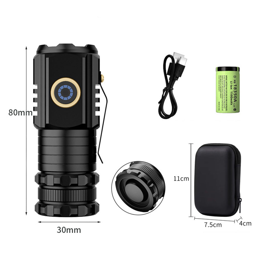 S350 Outdoor Aluminum Alloy Flashlight 18350 Battery Powered Portable Flashlight with Storage Bag