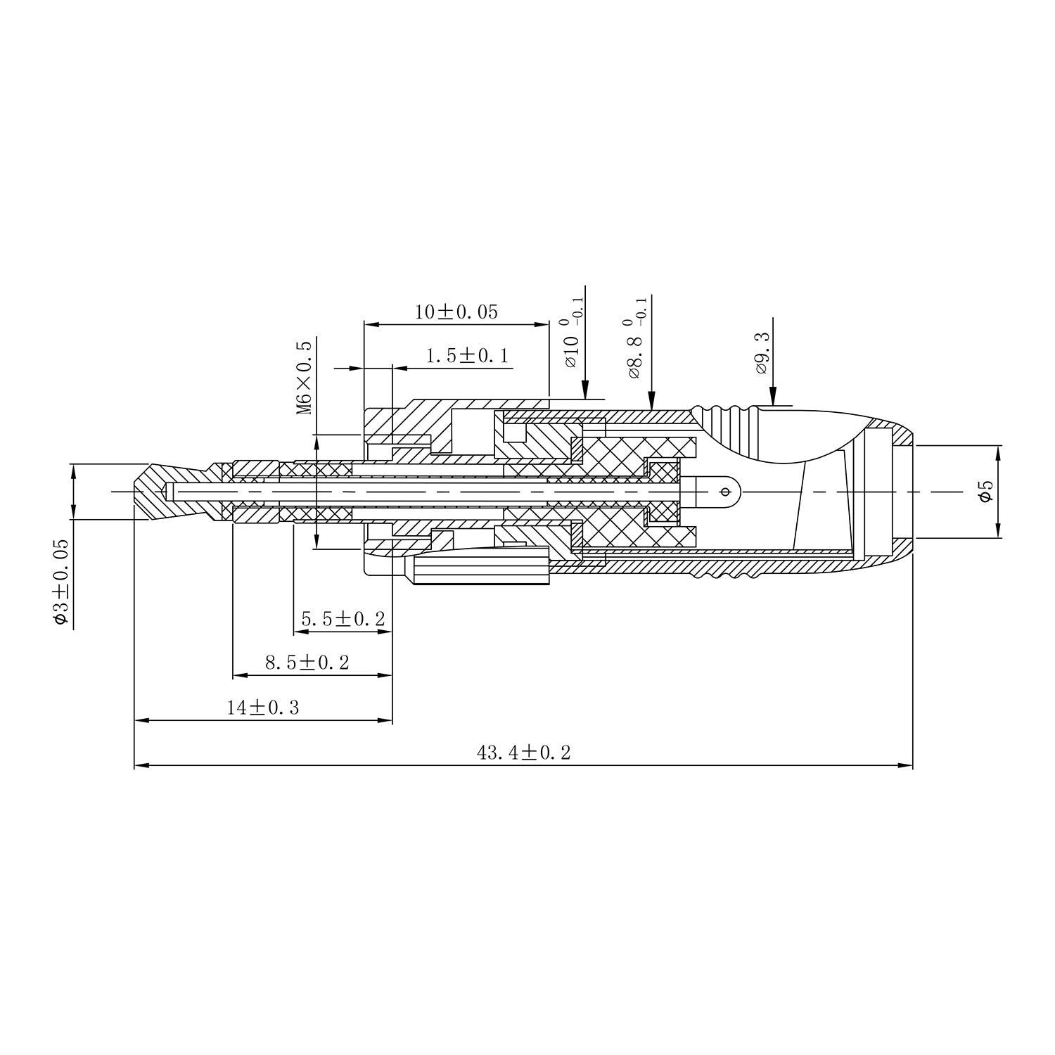 - The outer diameter of the tail hole is 5mm, it is recommended to use wire with an outer diameter of 3.0~4.8mm for production