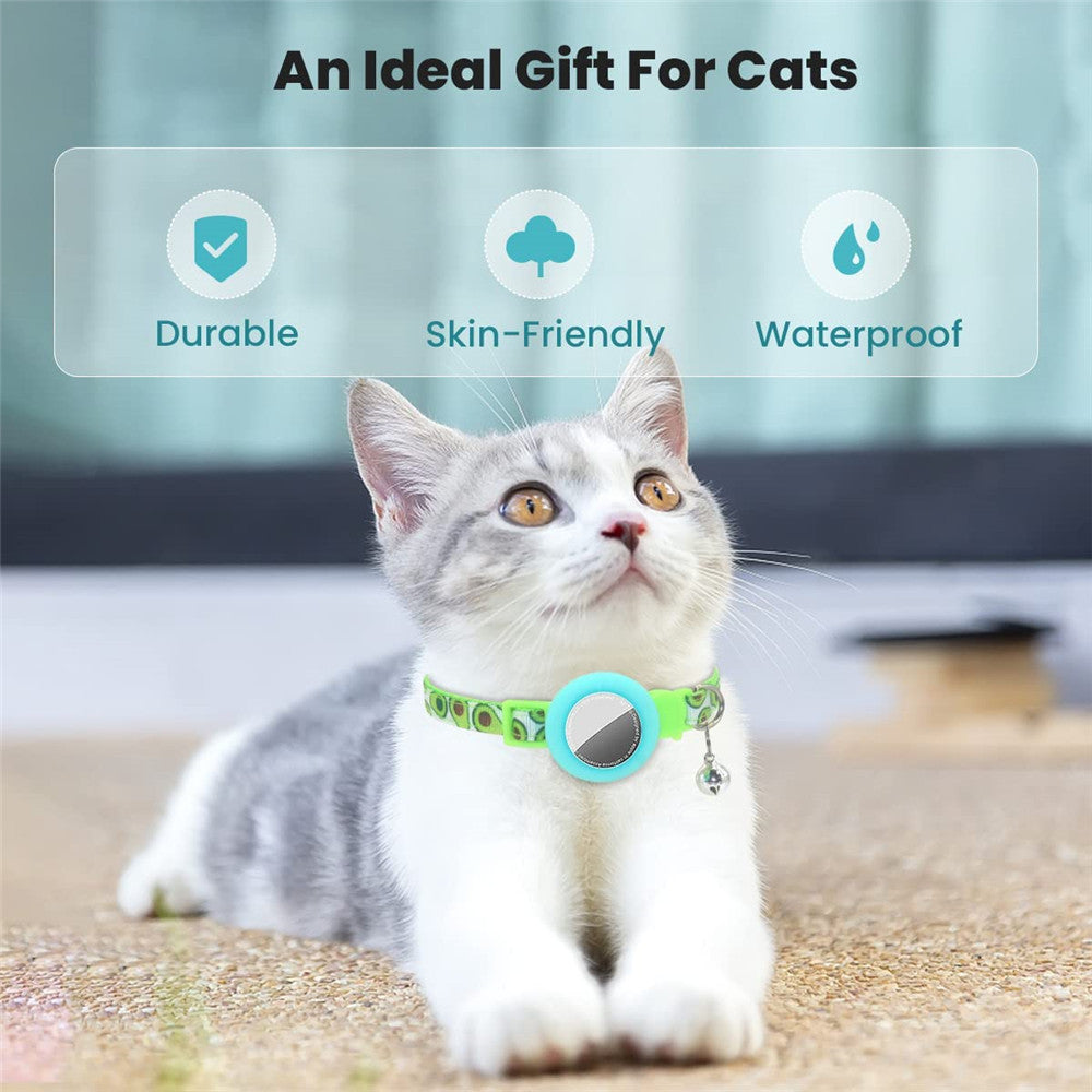 Silicone Case for AirTag Locator Fruit Pattern GPS Tracker Adjustable Pet Collar with Bell