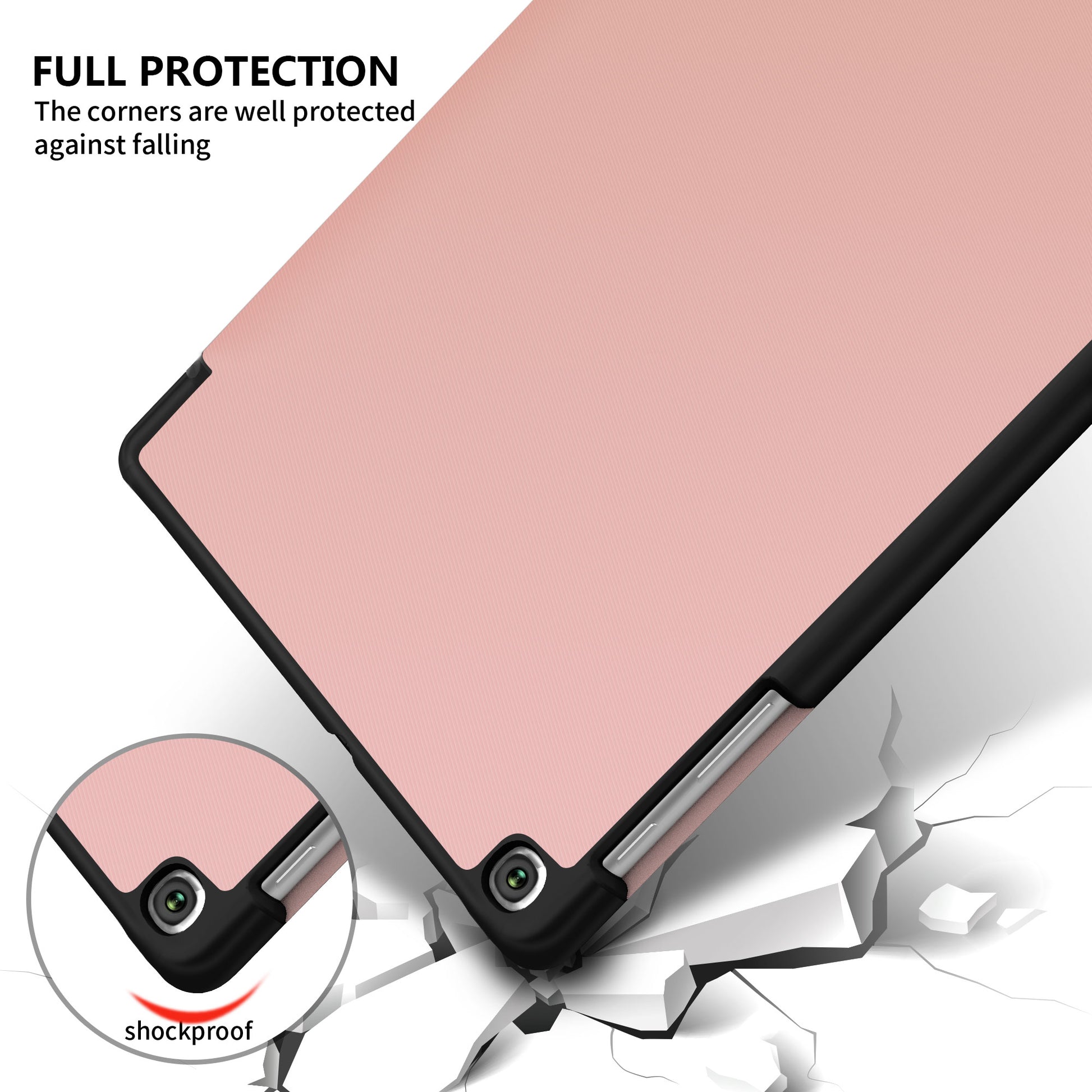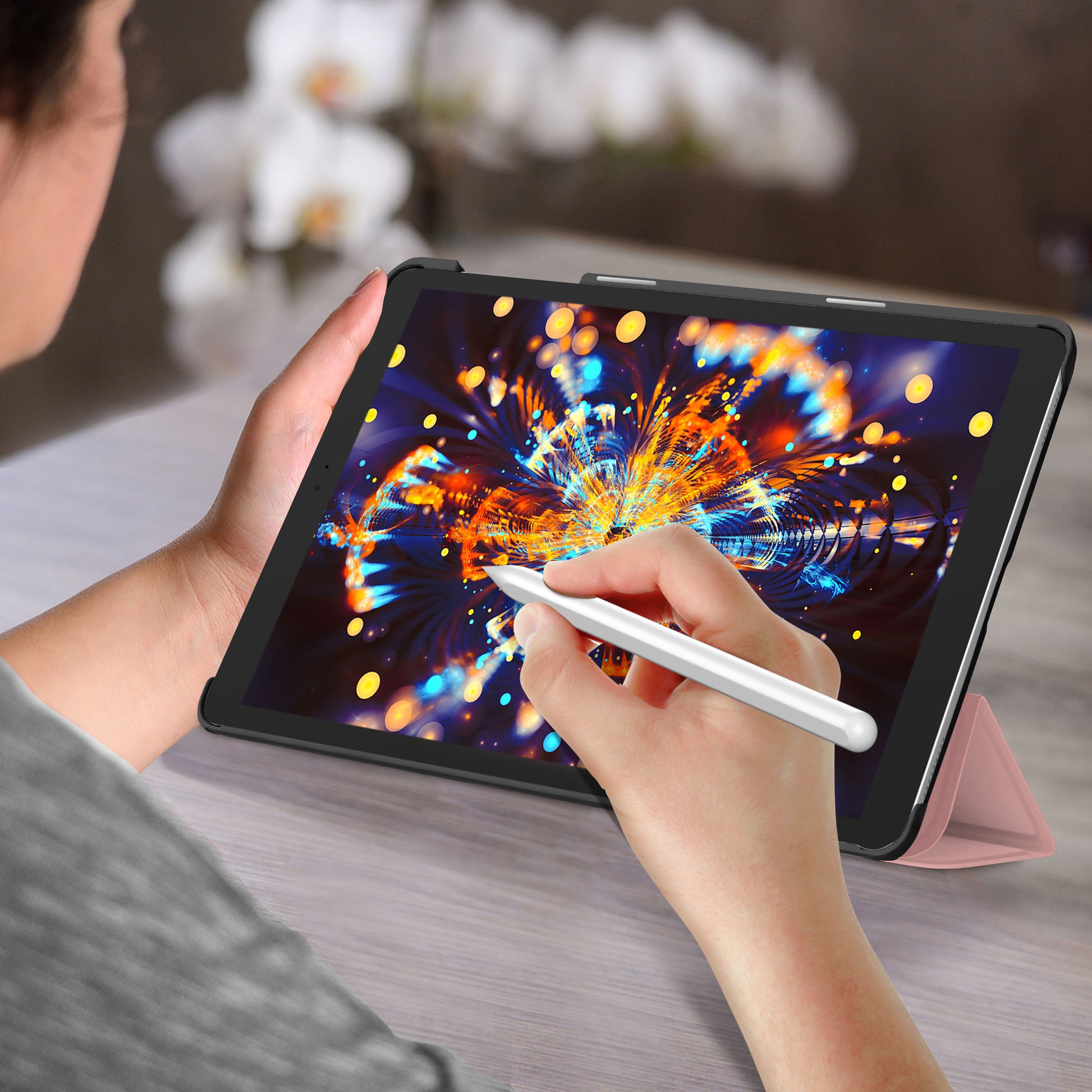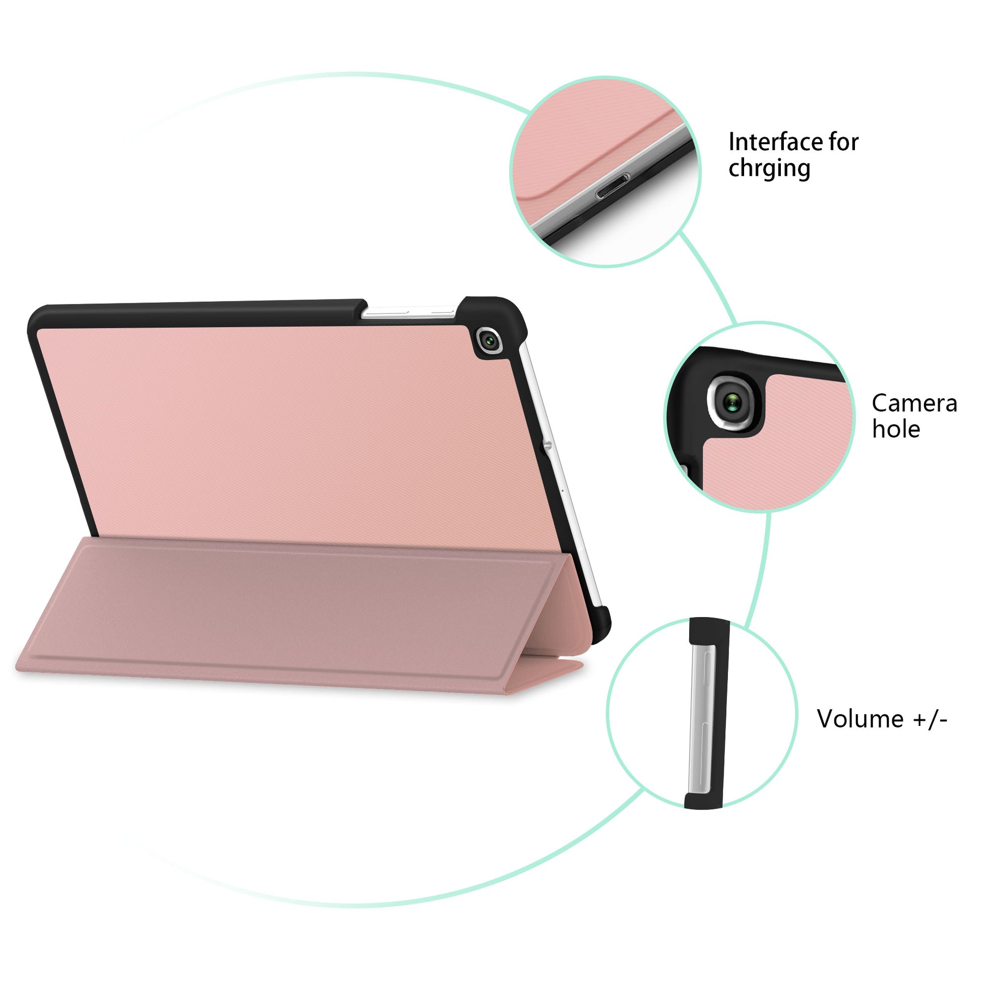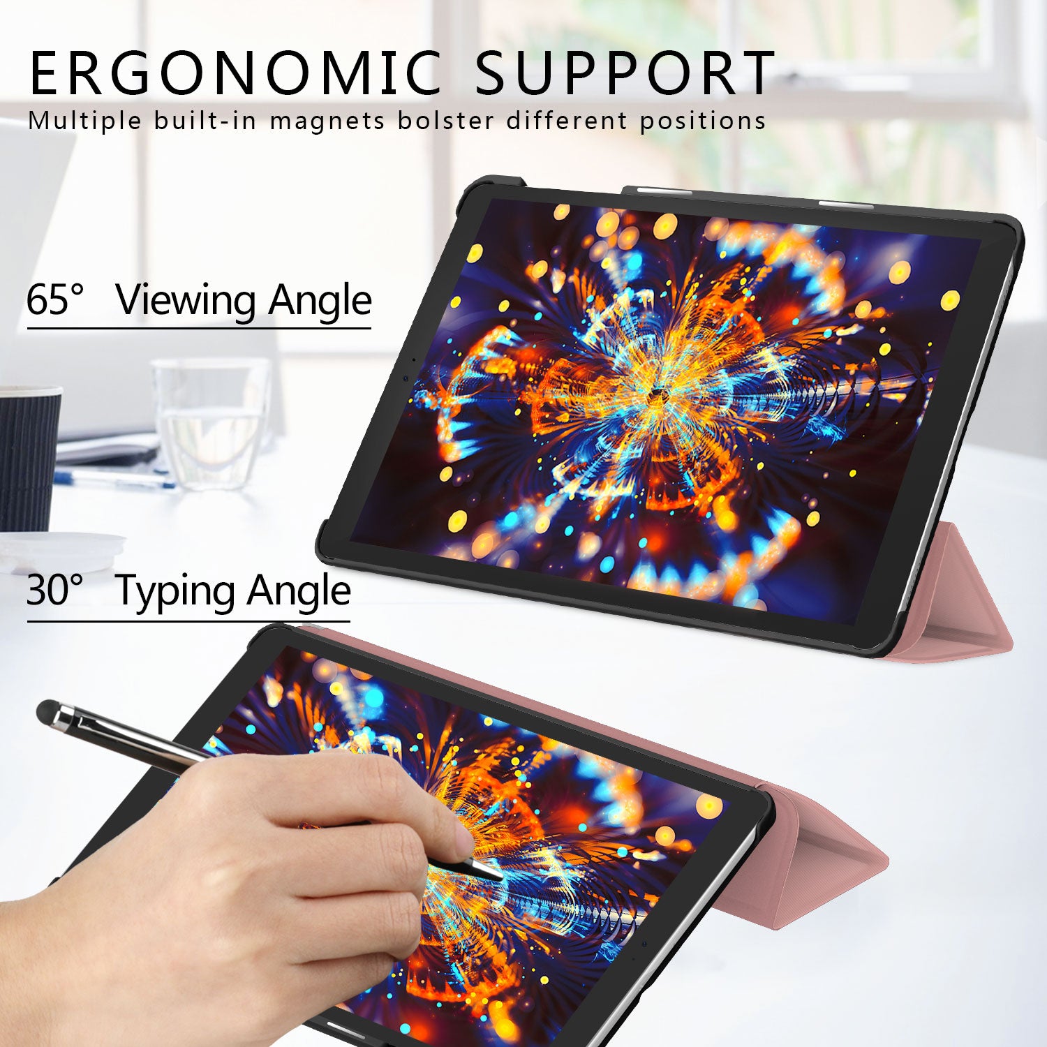 Premium quality PU leather with a silky texture, and soft TPU back shell with 4 corner cushions, providing your tablet comprehensive protection from shocks, drops and impacts. The tri-fold front cover offers a sturdy and versatile stand for viewing and typing. Precise cutouts ensure every single port easily accessible.