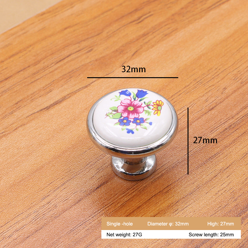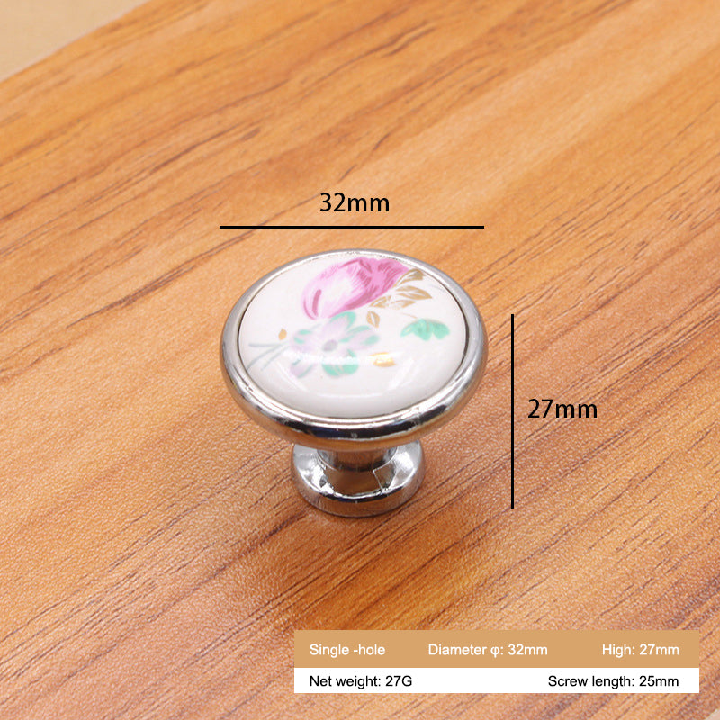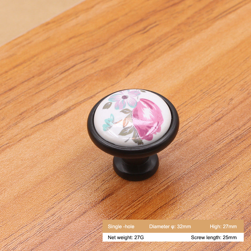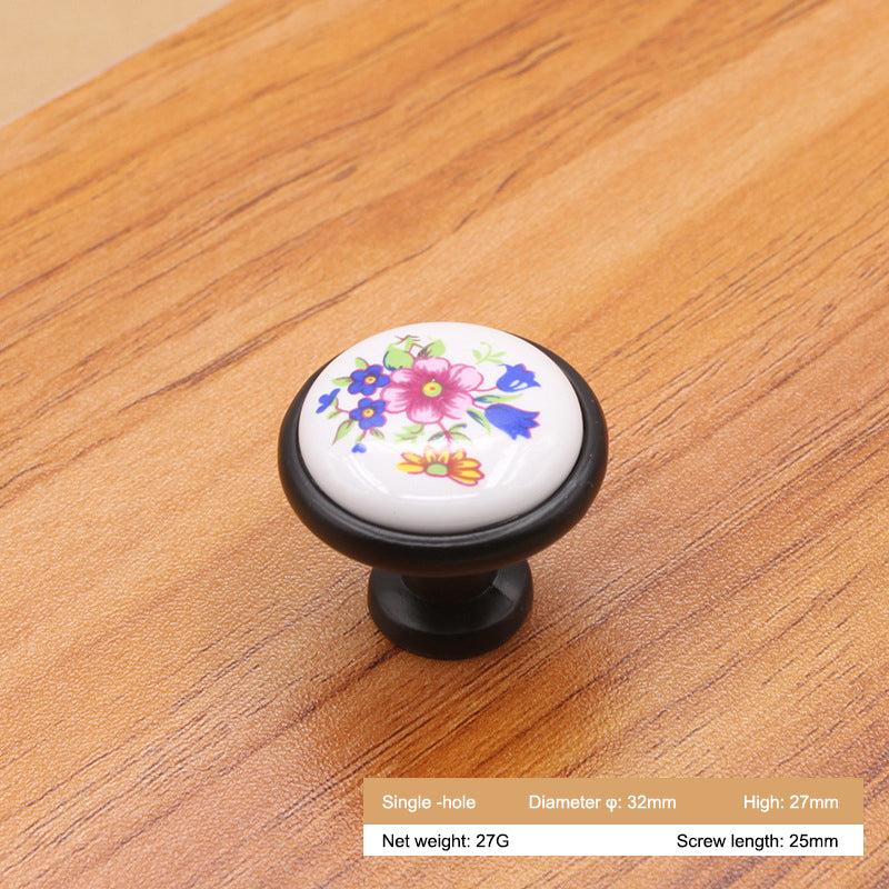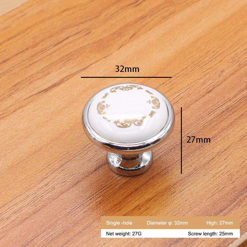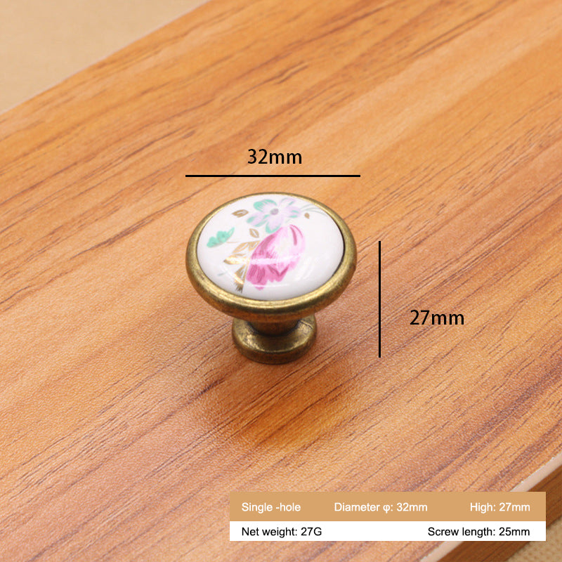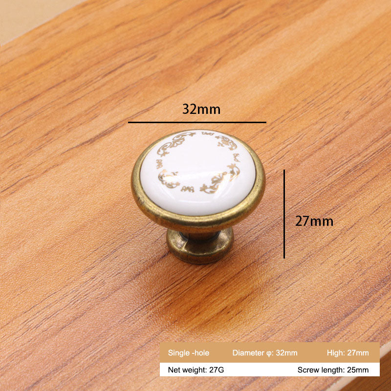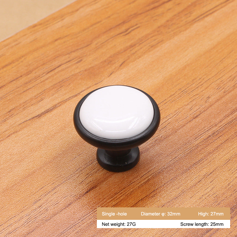 Single Hole Zinc Alloy + Ceramic Handle Kitchen Vintage Door Drawer Handle Cabinet Pulls Knob with 25mm Screw