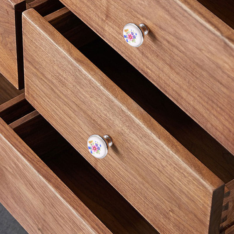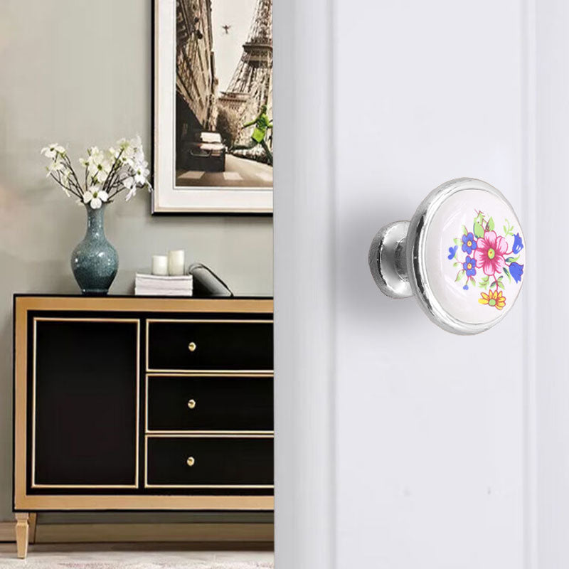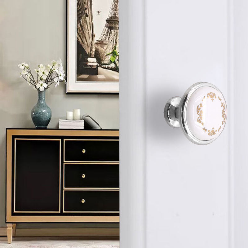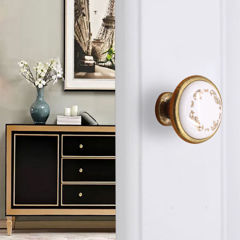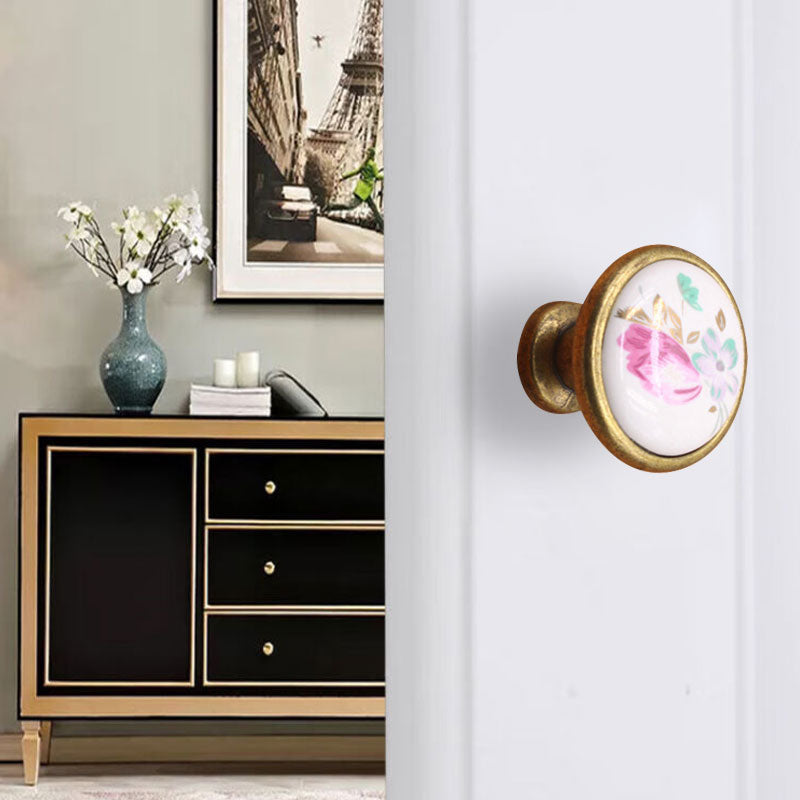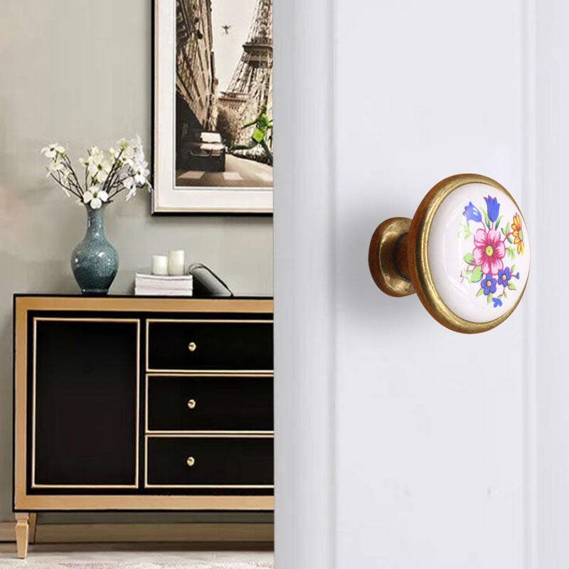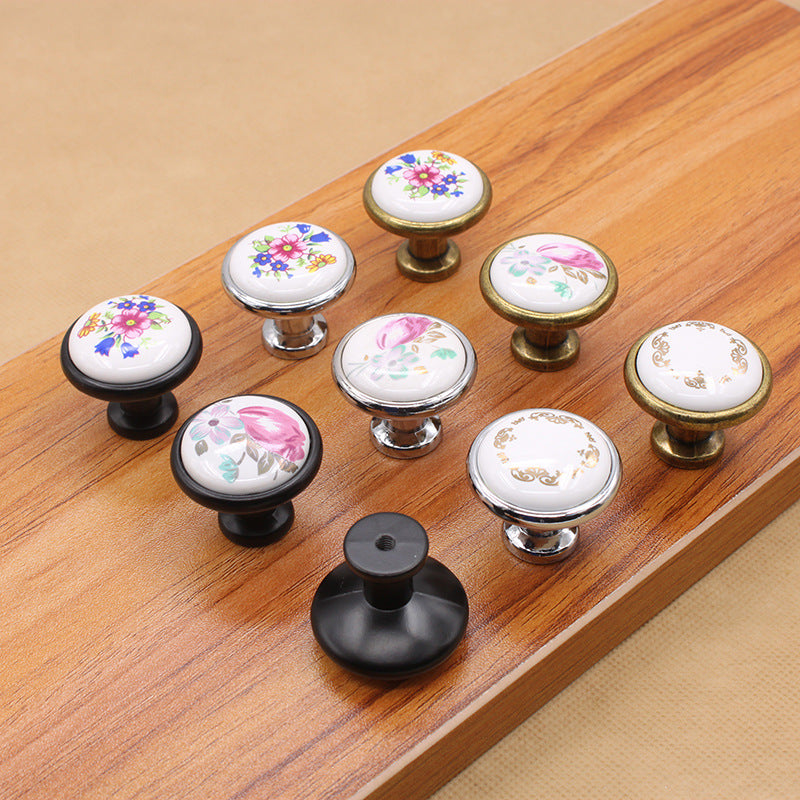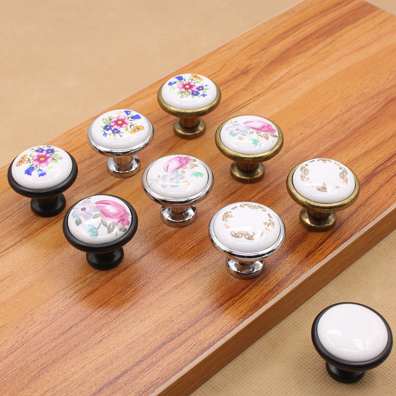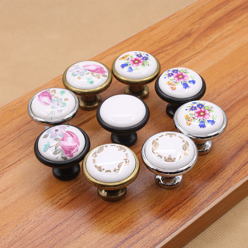 Single Hole Zinc Alloy + Ceramic Handle Kitchen Vintage Door Drawer Handle Cabinet Pulls Knob with 25mm Screw