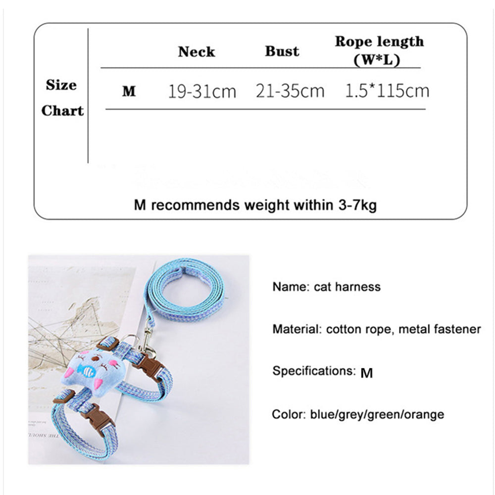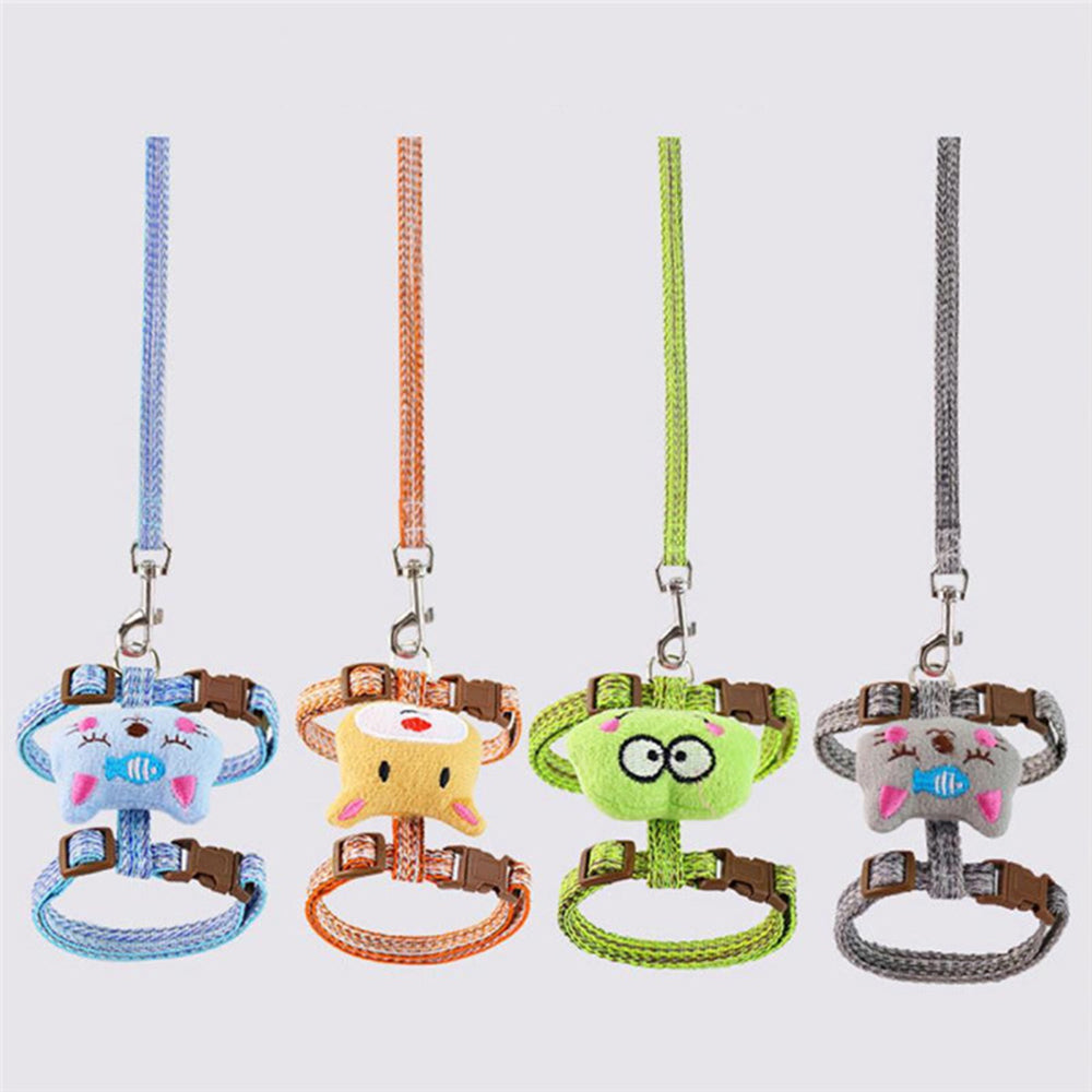 Size M Cartoon Animal Decor Adjustable Dog Cat Walking Lead Leash Nylon Pet Harness Leash
