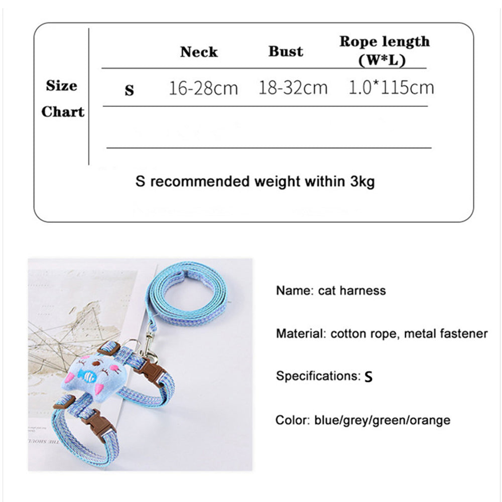 Size S Cartoon Animal Design Nylon Pet Harness Leash Adjustable Dog Cat Walking Lead Leash