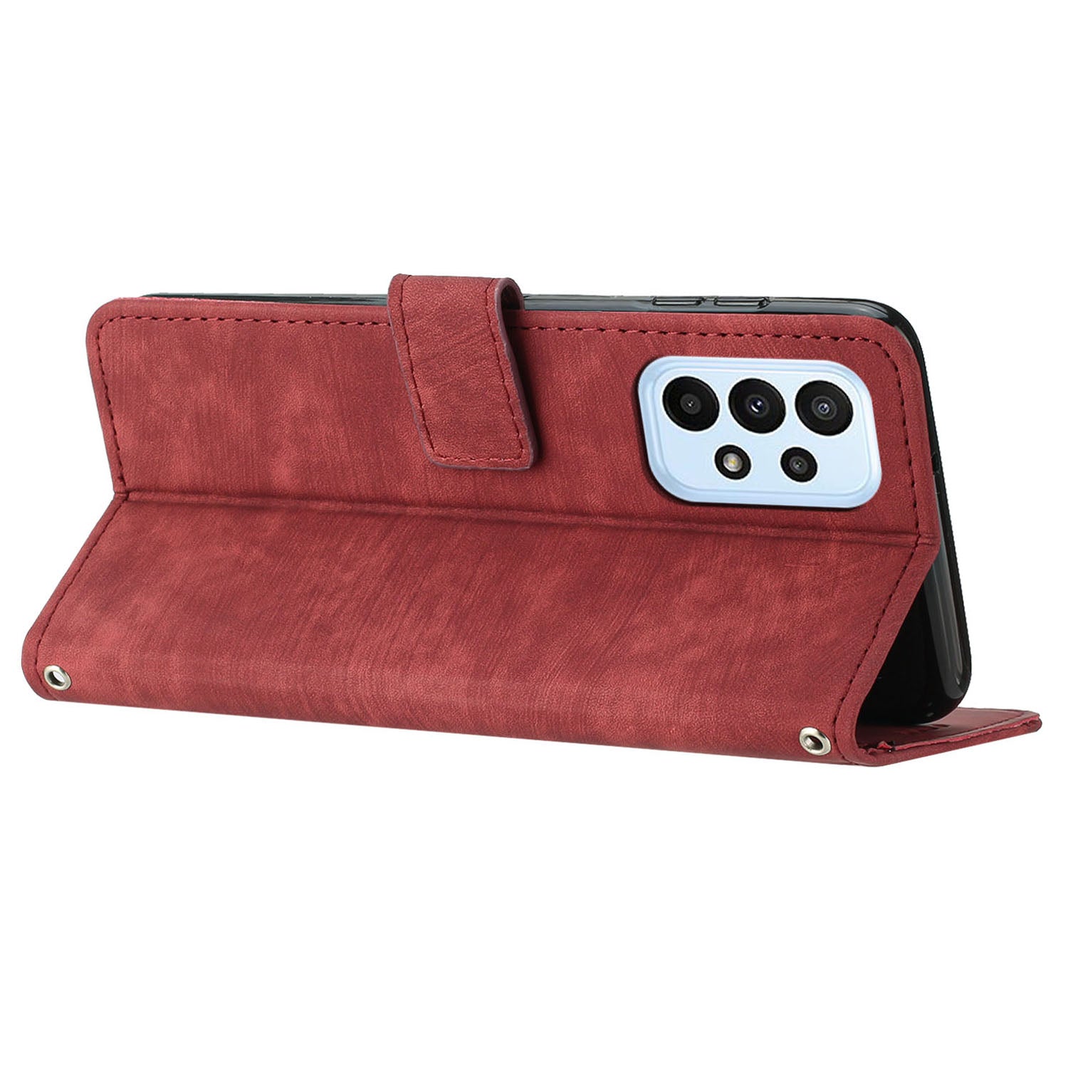 Skin-touch Feeling Wallet Case for Samsung Galaxy A33 5G , Lines Imprinted Stand PU Leather Phone Cover