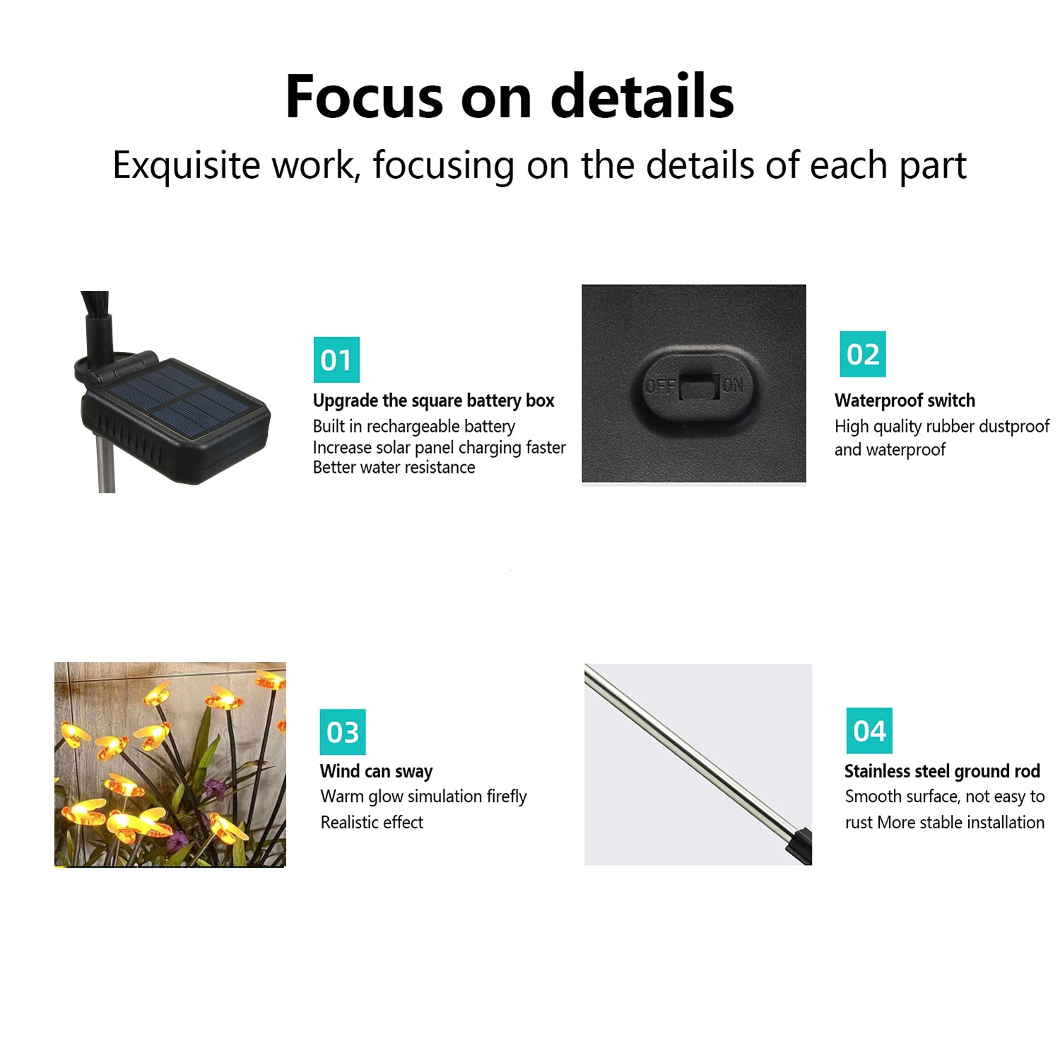 - Widely used in lawn, garden, courtyard, sidewalk decoration, etc. (There must be direct sunlight in the application scene)
