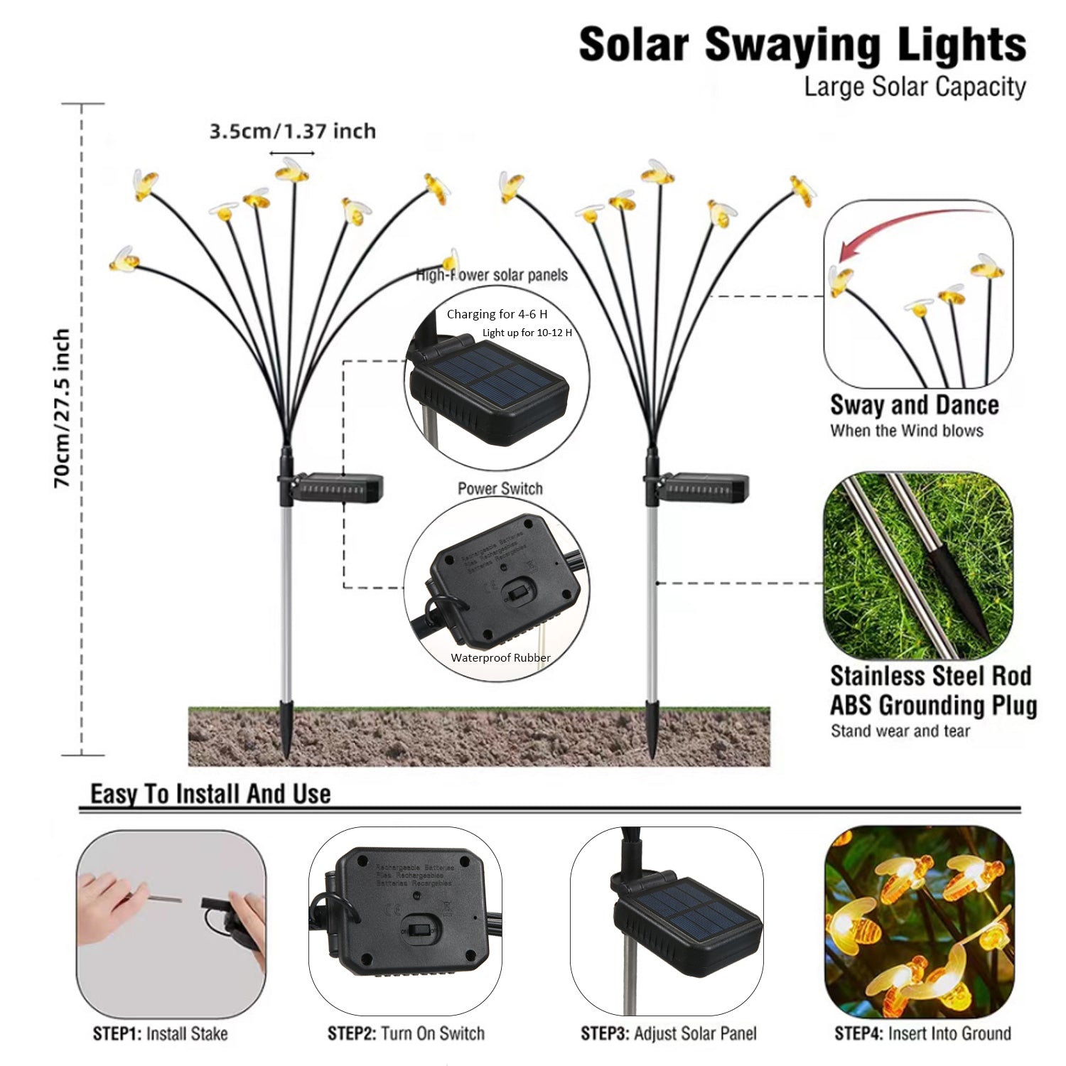 Solar Bee Firefly Light Outdoor Waterproof 8-LED Lamp Garden Decorative Light Yard Patio Pathway Decoration