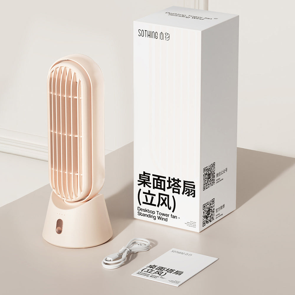 SOTHING Desktop Tower Fan USB Rechargeable 3 Wind Speeds Summer Standing Desk Fan