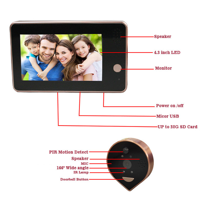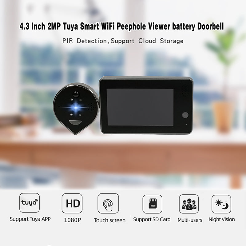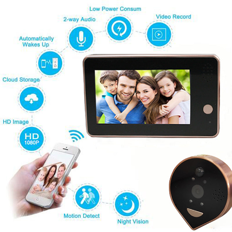 SY-38 4.3 Inch Smart WiFi Door Peephole Viewer 1080P Digital Peephole Doorbell Camera with Two-Way Audio, PIR Human Detection