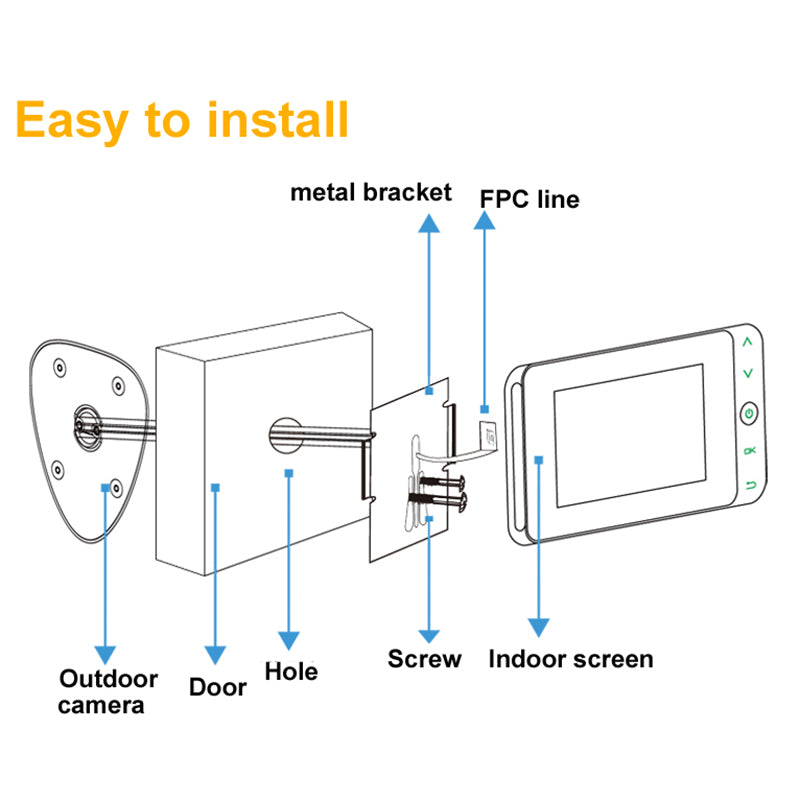 - Smart Digital Peephole Viewer: The Peephole doorbell camera can connect to a WiFi router wirelessly. You can monitor (handheld including smartphones, and Android tablets) and two-way intercom with noise reduction.