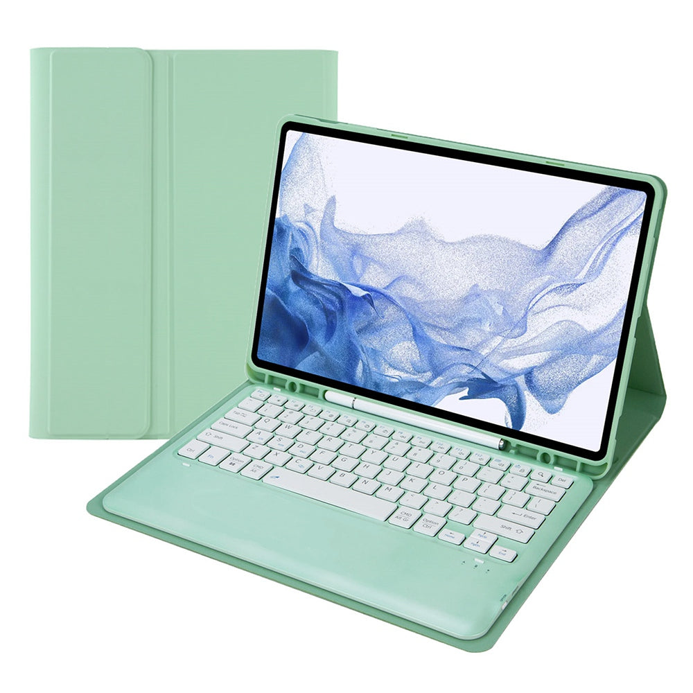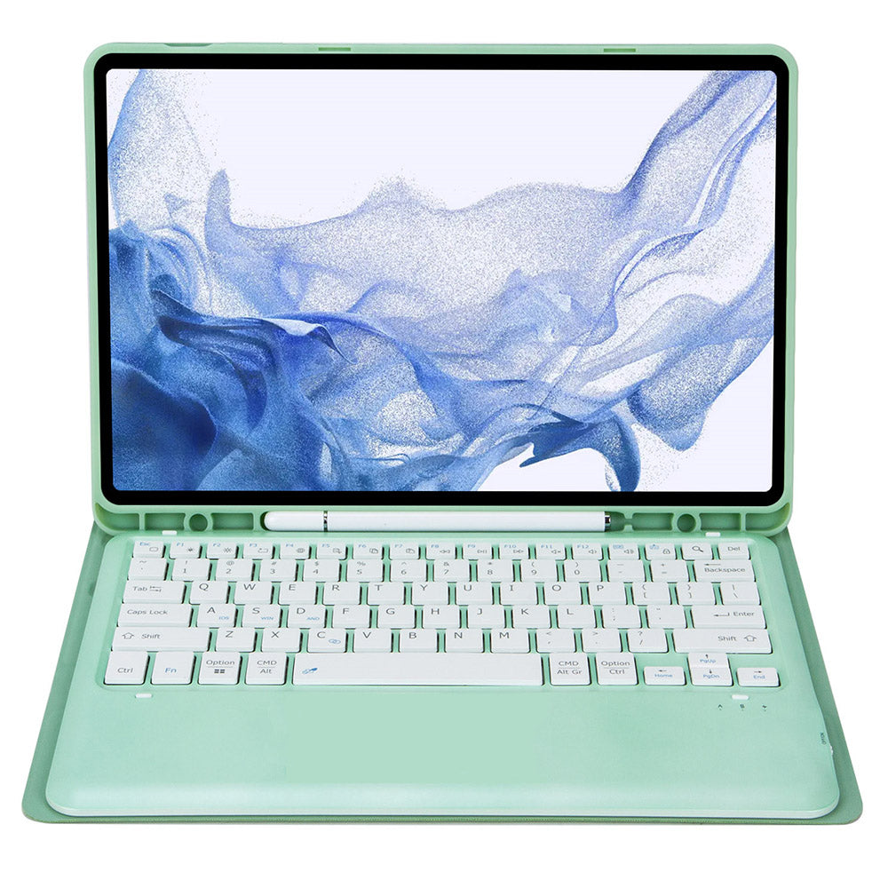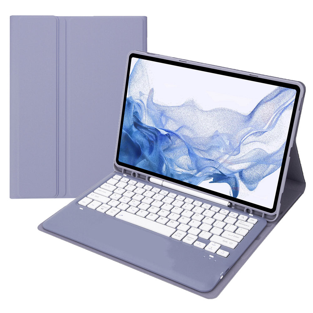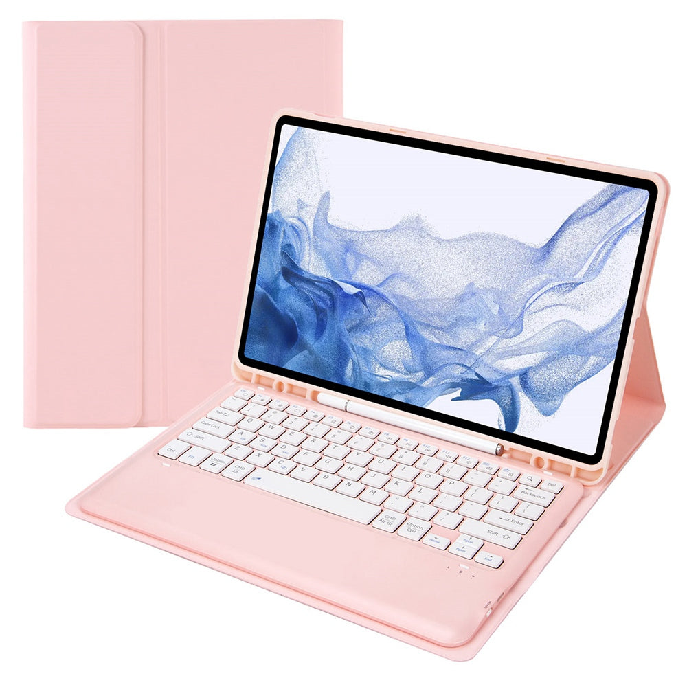 T800B For Samsung Galaxy Tab S8+ X800/S7 Plus T970/S7 FE T730 Anti-Scratch Protective Case Removable Bluetooth Keyboard Shockproof Stand Leather Case with Pencil Holder