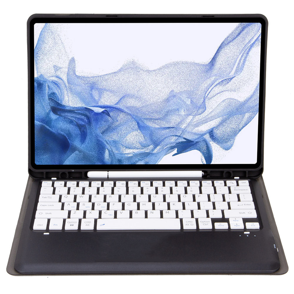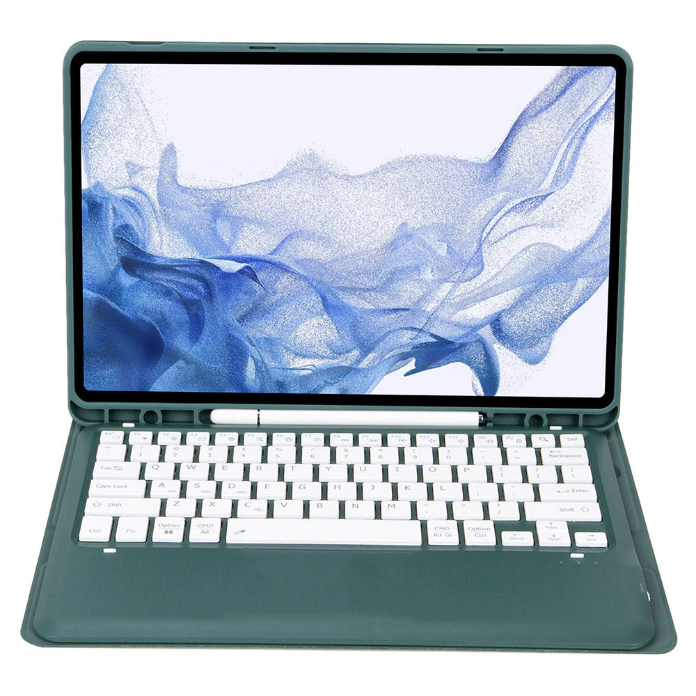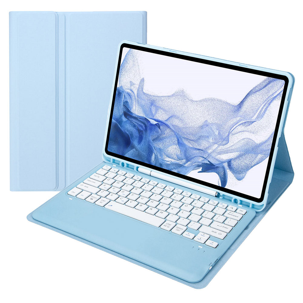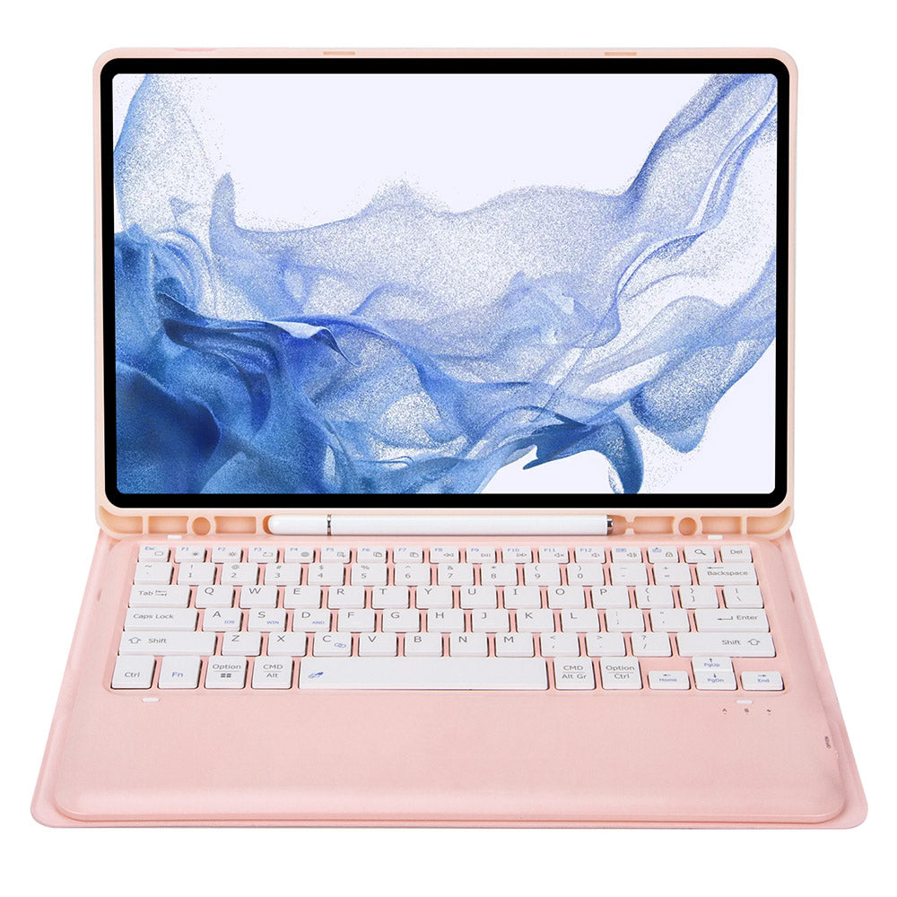 T800B For Samsung Galaxy Tab S8+ X800/S7 Plus T970/S7 FE T730 Anti-Scratch Protective Case Removable Bluetooth Keyboard Shockproof Stand Leather Case with Pencil Holder