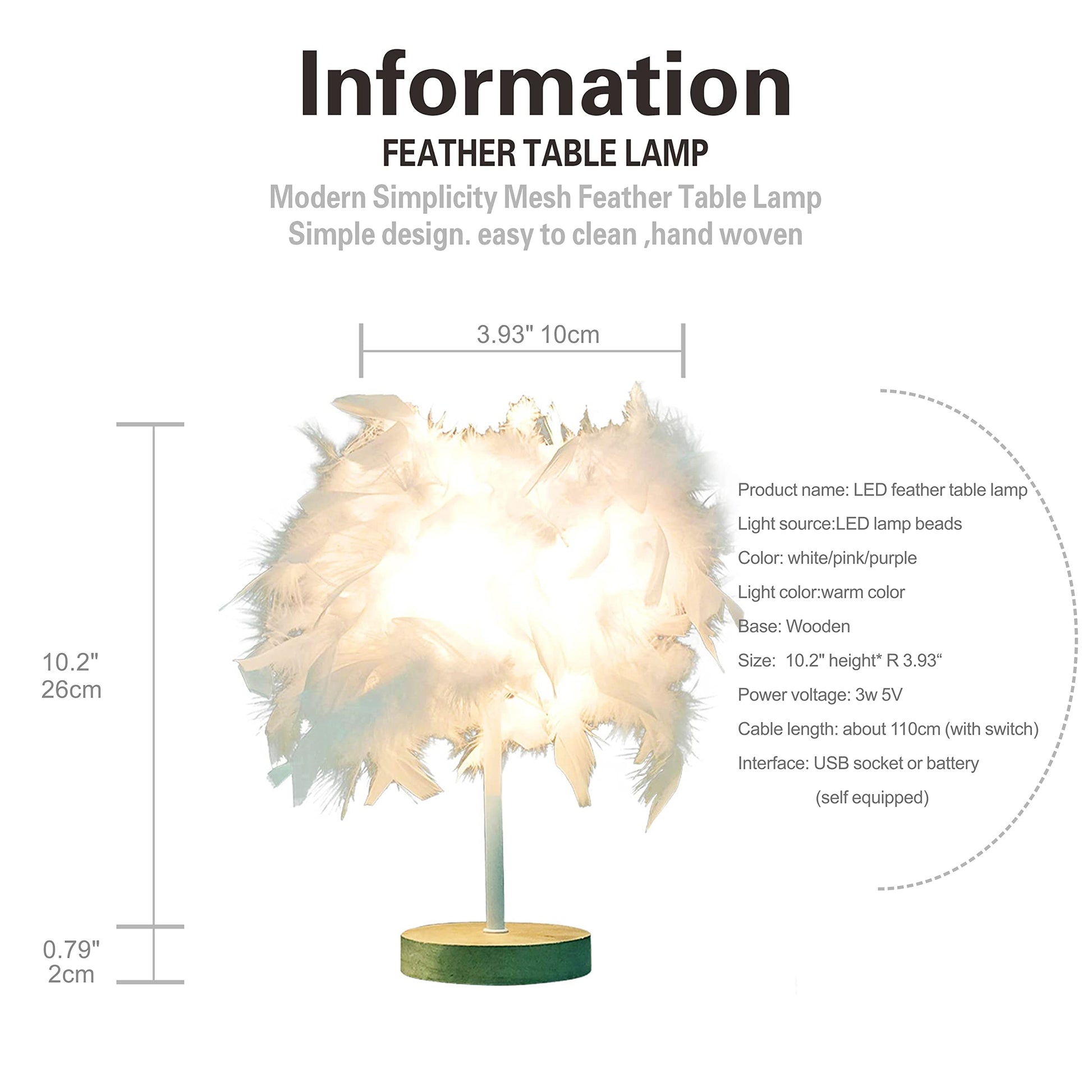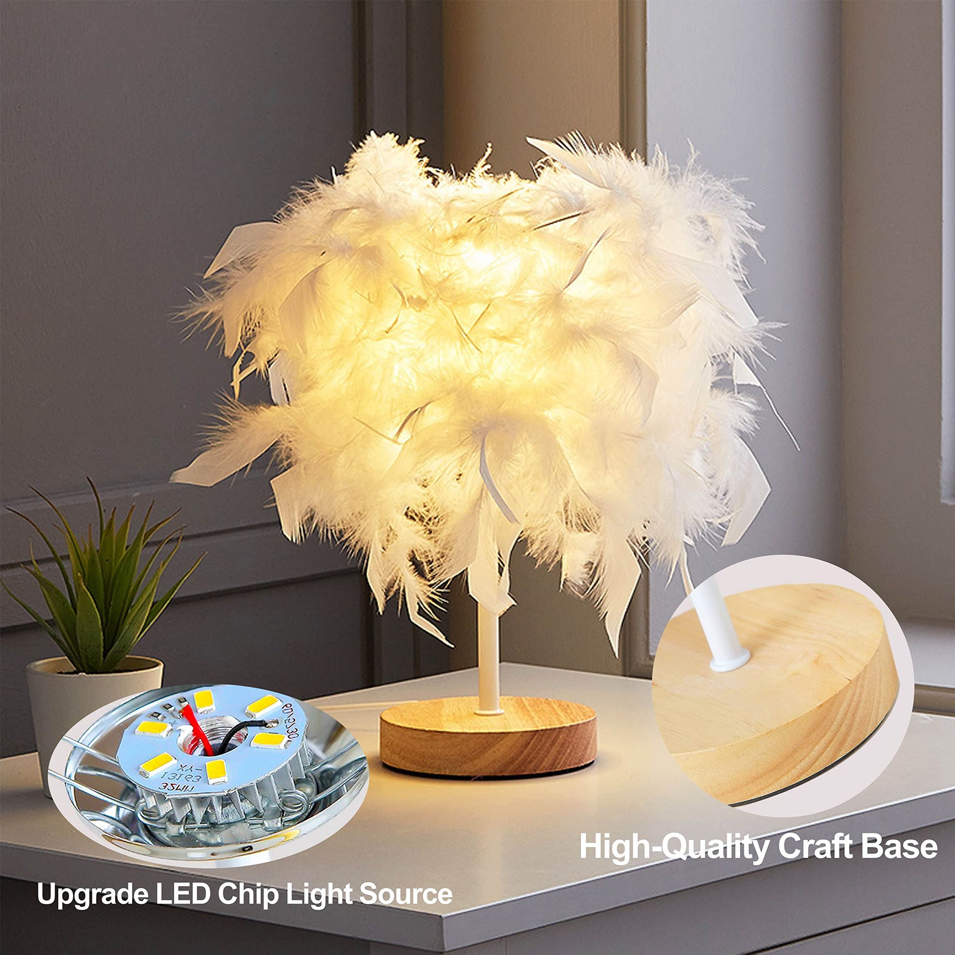 TA-019 Feather Lampshade Table Lamp Bedside LED Light Bedroom Desk Night Light Home Decoration for Sleeping, Reading