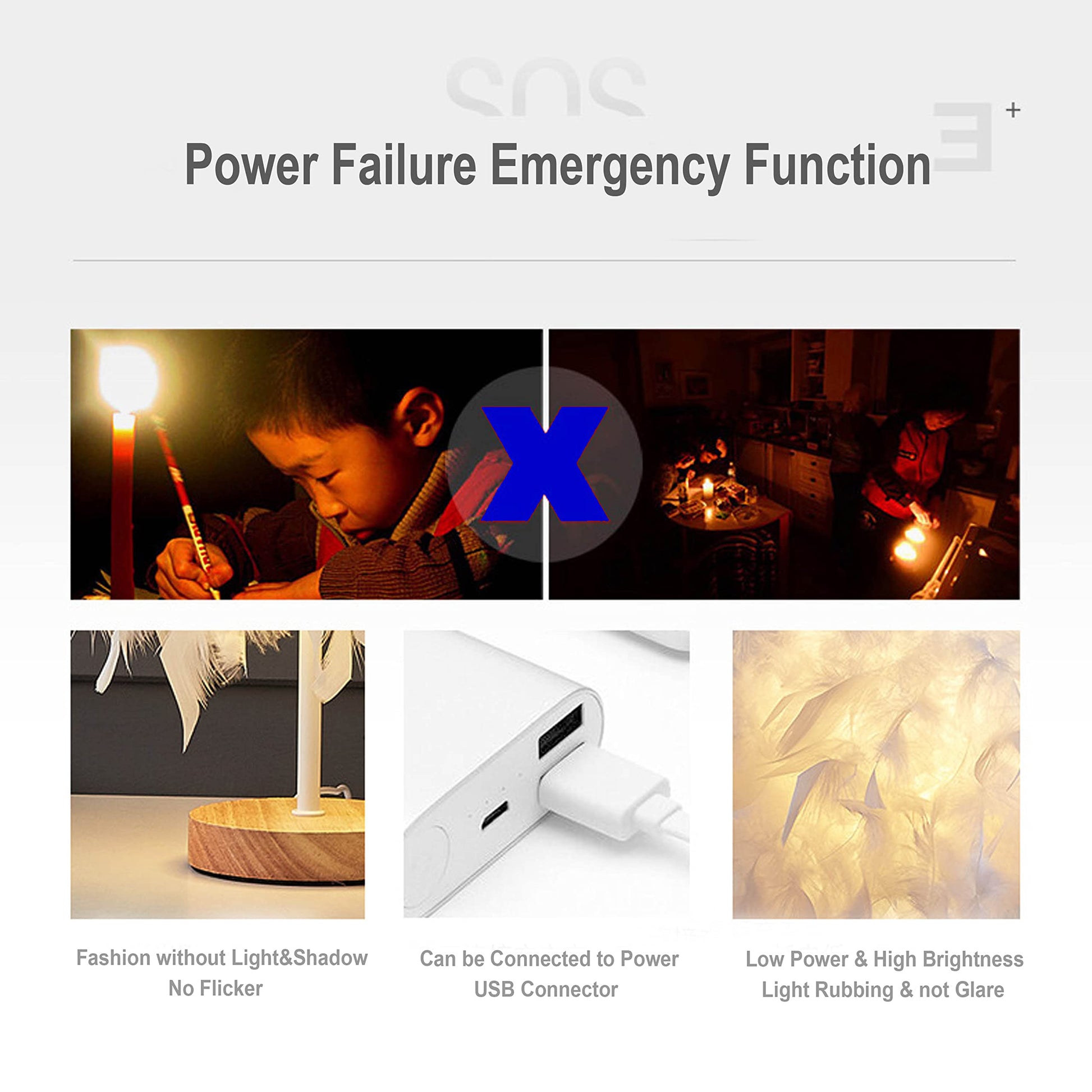 - Novelty feather LED light with wood base, put it on your bedside, dresser or coffee table