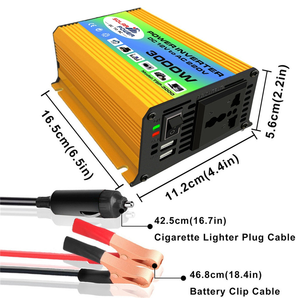 Tang I Generation 12V to 220V 3000W Intelligent Car Power Inverter with Dual USB for Camping, Traveling